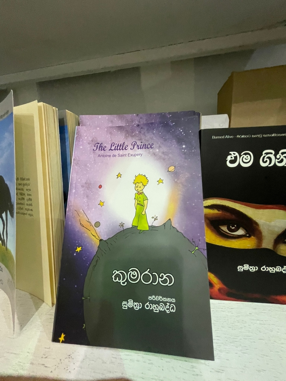 책들은 출판사마다 다양한 형태로 배치되었지만 랑카 유명 작가전 전시도 되어 있어 그야말로 핫하고 힙한 요즘 작가들도 여럿 알게 되었다. 한국에선 이렇게 작가별 큐레이션을 자주 해서 좋아하는 작가의 책들을 깊이 탐독할 수 있는데 랑카에서도 고전부터 신진작가까지 이렇게 친절히 안내해 주니 고마울 수밖에. 각 언어별로 모으고 있는 어린 왕자 책도 드디어 싱할라어 버전으로 득템 했다. 사실 짐이 무겁기도 하고 이삿짐도 생각해야 해서 살까 말까 고민했던 책이 아직 있었는데 아직 눈에 밟힌다. 책 욕심은 끝이 없고 왜 같은 실수를 반복하는지 모르겠지만 아마 도서전 끝나기 전에 다시 한번 방문해서 득템 하지 않을까 싶다.