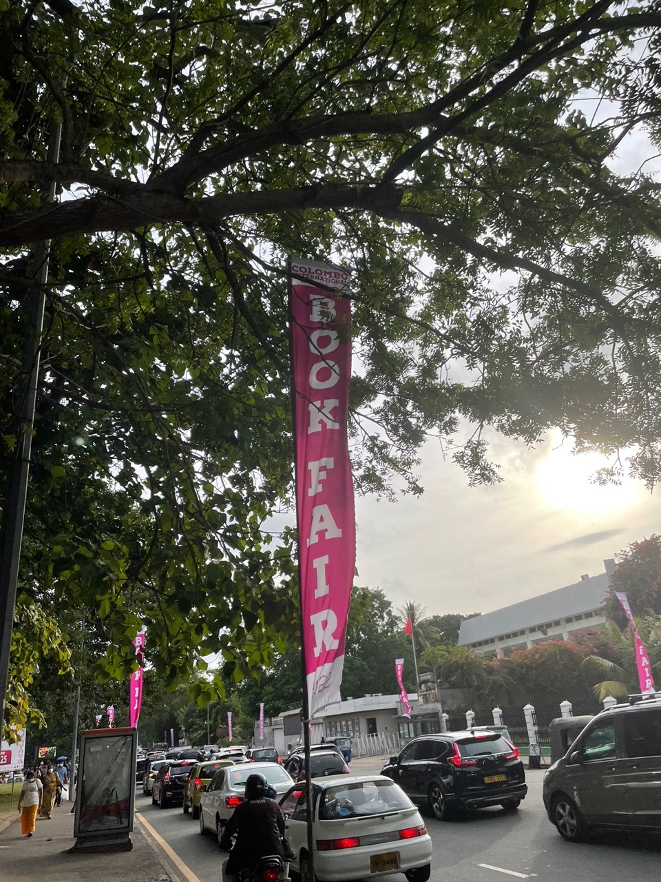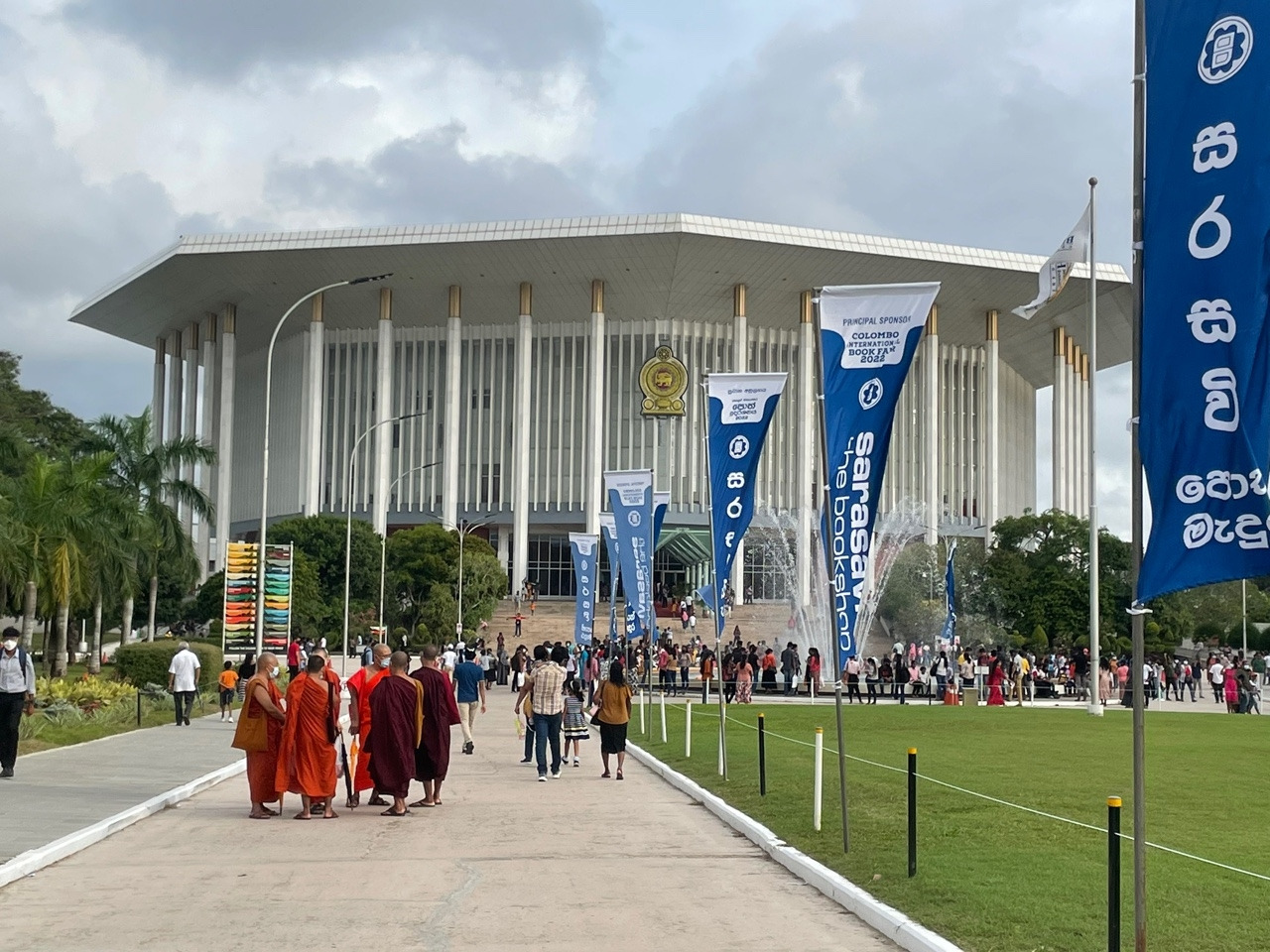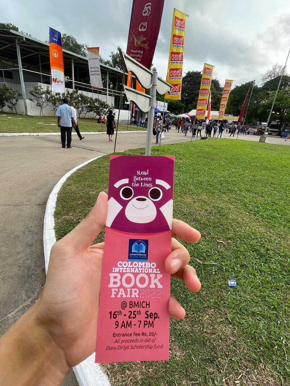 토요일 오전, 아직 햇살이 뜨거워지기 전 여유롭게 즐기는 산책을 좋아한다. 밤새 쌓인 나뭇잎을 치우는 가지런한 청소 여사님들의 빗질 소리, 지저귀는 새소리와 가벼운 산들바람은 주말이 시작되었음을 알리는 루틴이다. 편한 복장으로 걷는 익숙한 길, 오늘도 아는 고양이들과 강아지에게 줄 사료를 넉넉히 챙겨 걸어가는데.. 평소에는 보이지 않던 화려한 깃발이 길 위로 나부끼고 있었다. 이른 시간에도 저 멀리 길게 늘어선 줄도 보인다. 2022 Colombo International Book Fair!!! 콜롬보에서 가장 큰 컨벤션 센터인 BMICH에서 열리는 국제 도서 박람회가 개막한 것이었다.