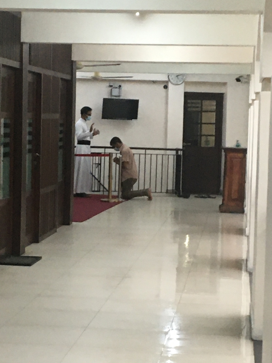 그리고 여느 성당과는 달리 이곳 성당에서 발견한 특이한 점도 있는데 성전으로 들어서는 입구에 남녀 구분이 되어있다는 점이다. 사실 신자석엔 모두가 구분 없이 함께 앉아있기 때문에 따로만 들어가는 게 무슨 의미일까 궁금했었는데 테러 폭격 이후 남성과 여성의 몸을 따로 수색하기 위해 만들어진 조치라고 한다. 믿음의 공간에 아직도 아픔이 뿌리내려 있다. 미사가 끝나고 보좌 신부님께서 열린 장소에서 고해성사를 주신다. 언제 어디서나 신부님에게 다가가 기도를 하고 무릎을 꿇고 기도하는 것이 숨 쉬는 것처럼 자연스럽다.