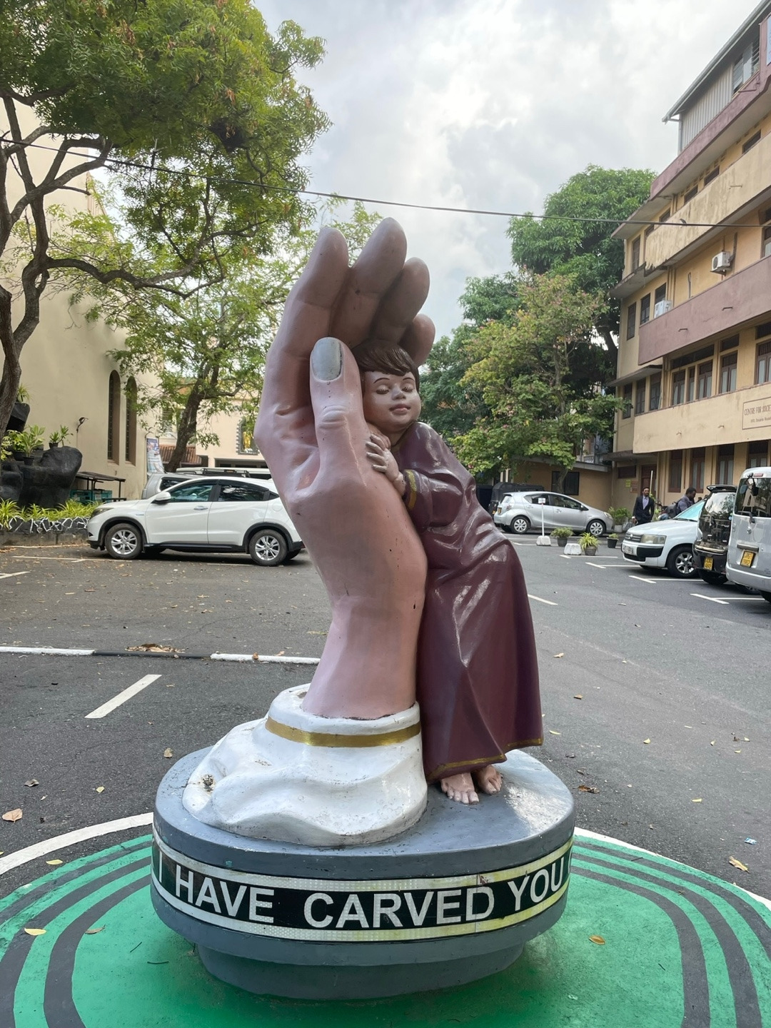 모든 이가 자유롭게 오가는 열린 모두의 장소에서 가장 필요한 손길을 먼저 내어주는 곳. 시내에서 멀지 않은 곳에 위치한 성당을 찾은 날은 유난히도 무더웠다. 내리쬐는 햇볕에 눈이 부셔 잠시 어디로 들어가야 할지 두리번거리자, 입구 어귀에 보이는 순백의 성모님이 길을 안내해 주신다. 그렇게 성모님을 보고 골목을 쭉 따라 들어서면 색이 바랜 병원 간판이 보인다. 생각했던 것보다 규모가 큰 성전 그리고 그 주위를 둘러싼 사회사목 공동체들의 이름도 눈에 띈다. 아누다라푸라의 보라색 성당으로 기억에 남아있는 익숙한 오블라띠회 그리고 반가운 성 에우제니오 드 마제노드 성인도 계신다.