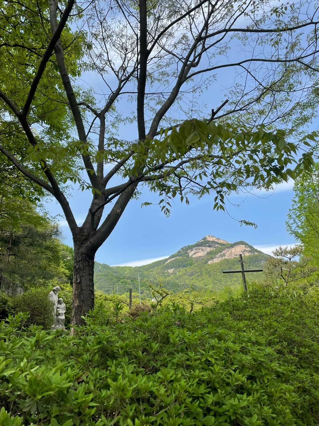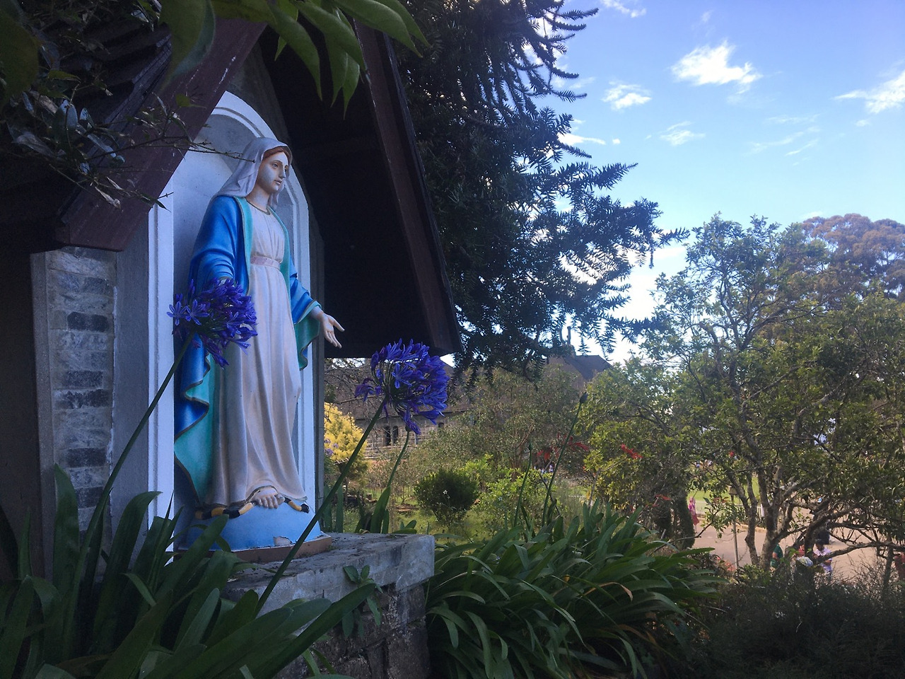 입구에 들어서면 망토 같은 수도복을 입은 유럽의 수호성인 베네딕토 성인이 가장 먼저 우리를 맞아주신다. 그리고 올망졸망 꽃망울이 재잘대는 듯한 그림 같은 정원과 성모님이 올려다 보인다. 저 너머 정원 가운데엔 예수님 모습이 빼곡히 보이는데 마치 하나의 야이기처럼 이어진다. 신기한건 총 천연색의 꽃과 물상들이 조화로움을 해치지 않으며 저마다 자신의 존재감을 뽐내고 있다는 것이다. 모든 게 자유로운 듯 하지만 수도원의 오랜 규칙과 원칙을 따르며 영성을 가꾸어 나가는신앙과도 참 많이 닮아있다.