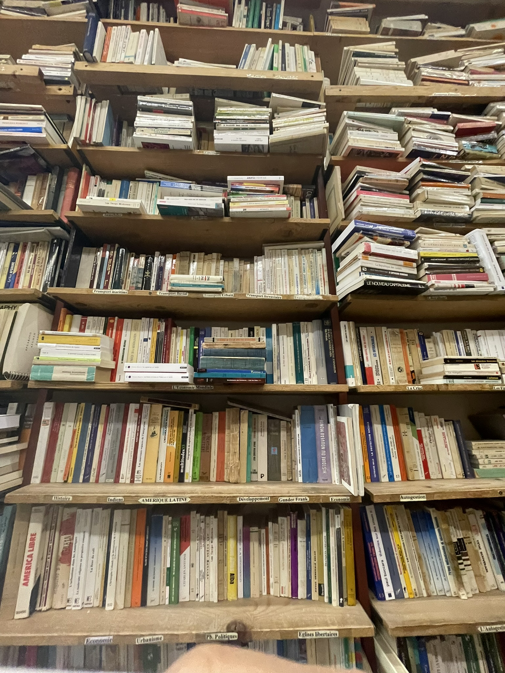 다시 생제르맹 대로로 돌아와 이제 남쪽 뤽상부르그 공원까지 이어진 길을 찬찬히 걸어 내려간다. 의과대학으로 유명한 파리 시티대학 (University Paris Cité, Odéon)과 소르본 대학 (Sorbonne Université)까지 하나의 거대한 대학가가 펼쳐진다. 그야말로 라탱 지구까지 하나의 연구단지처럼 이어진 학문의 숲은 마치 혈관처럼 서로 연결되어 지식과 혁신을 파리의 심장으로 공급하고 있었다. 그렇기에 도시는 학생들에게 너른 마음을 열어준다. 거리마다 학생들이 저렴한 가격에 책을 구매할 수 있는 중고서점이 가득하다. 그중 가장 눈에 띄는 San Francisco Book.Co에 들어섰다. 책 가판에 한 어르신께서 한참 책을 고르고 계셨다. 책을 사고팔 수 있는 곳이라 읽고 있던 책을 팔고 그 자리에서 새로운 책을 가져가신다. 마치 숨을 쉬듯 사람들이 자연스레 책방에 오가는 이 자유로움은 이 도시의 여유와 참 닮아 있다.