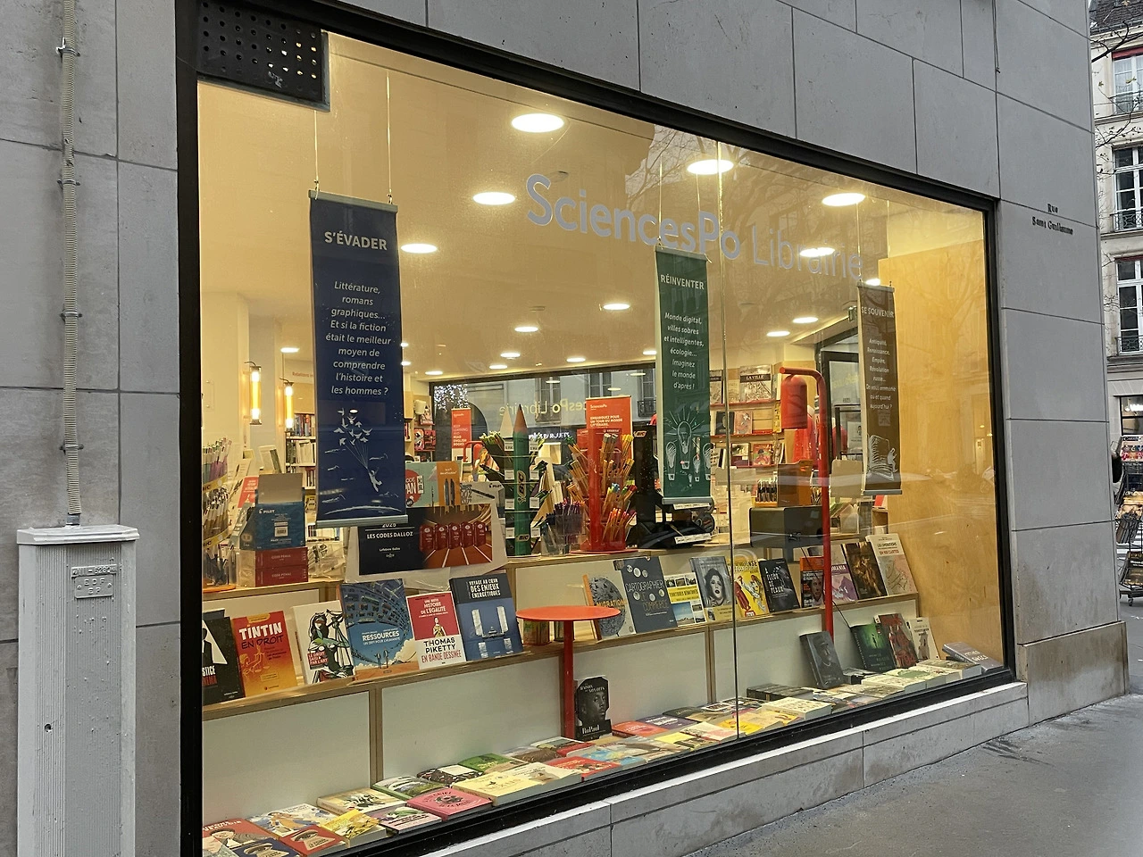우선 생제르맹 거리에서 앵발리드 방향으로 조금 올라오다 보면 프랑스 최고의 사회과학 대학인 시앙스포 (Sciences Po)를 만날 수 있다. 프랑스 엘리트주의의 상징으로 정치권력의 요람으로도 불리는 그랑제꼴이지만 (사악한 학비는 덤), 국제적인 커리큘럼과 연구소의 반짝이는 연구주제들에 항상 눈여겨보게 되는 대학이다. 함께 일하는 동료가 여기 출신인데 파리에 간다고 하니 학교 머그컵 하나를 부탁했다. 학교도 구경할 겸 둘러본 서점. 갑자기 부슬비가 내려서 한참 추위에 떨었는데 따뜻한 차 한잔을 내어 주신다. 정갈한 분위기에 주로 학생들이 오는 서점이어서인지 뭔가 사랑방 느낌이랄까? 무엇보다 한강작가의 「작별하지 않는다」를 발견해서 내적 친밀감을 적립했다.