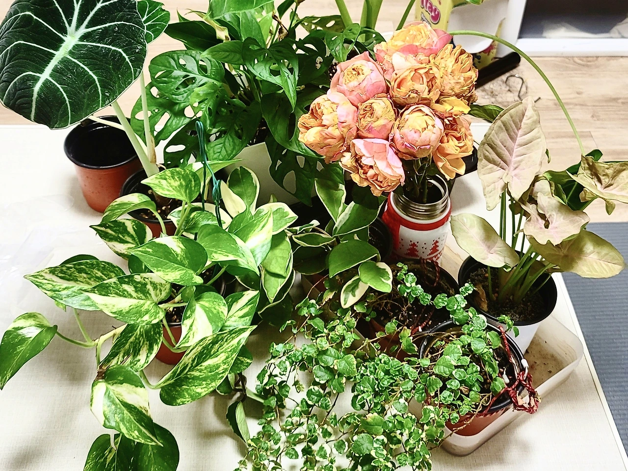 푸미라와 스킨답서스는 입양 갔고, 핑크 싱고니움과 알로카시아들은 잘 크고 있다
