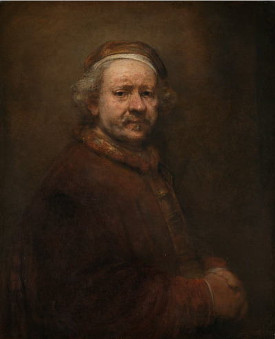 오른쪽 그림은 63세 때로 죽기 얼마 전의 작품이다. 이 시기 렘브란트는 막대한 재산과 명성을 모두 잃고 초라한 신세로 전락했다. 그리고 그때 그린 자화상은 삶의 희로애락, 성공과 몰락을 모두 겪은 후 인생 말년에 접어든 나이 들고 지친 한 인간의 모습을 그대로 보여준다.