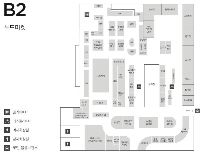 기존 지하 1층에는 식품관이 위치했었다. 롤, 샐러드, 튀김, 디저트 등을 파는 소규모 음식점들이 입점해 있고 곳곳에 취식 공간이 있어, 가족단위 고개들이 여러 종류의 음식을 구매하여 취식하는 모습이 일반적이었다. 이마트와의 연결통로가 있었기 때문에 마트 방문객들이 푸드코트만 이용하는 경우도 많았다. * 7층에도 식당가가 있지만, 에스컬레이터를 통해 이동해야 하기 때문에 아이 또는 짐이 있는 마트 방문객들에게는 접근성이 좋지 않다.