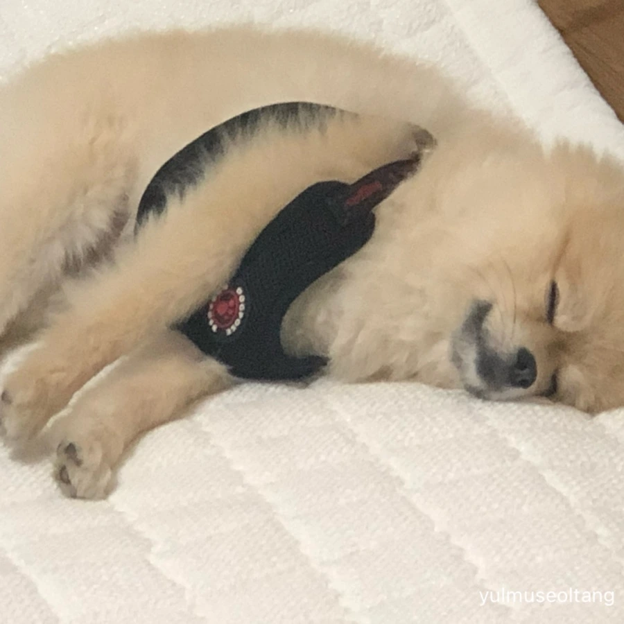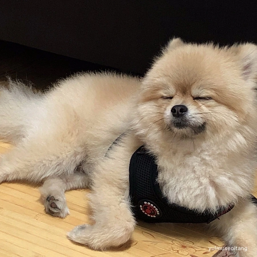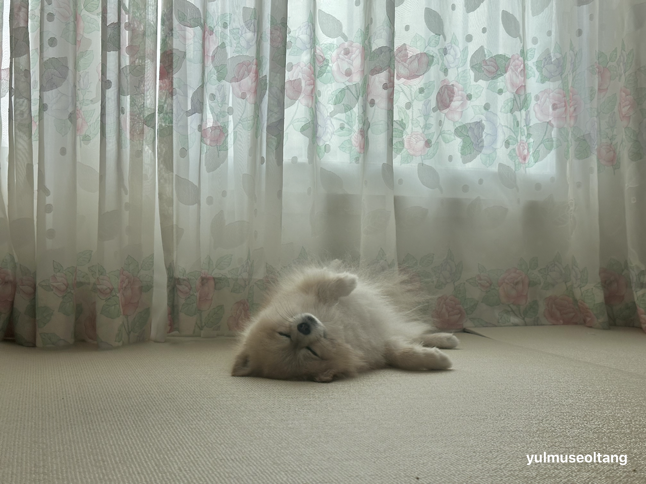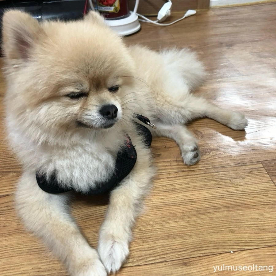 오늘날의 율무. 저 자세가 기본인 한량 강아지인데…