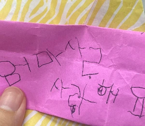 아직 글씨는 서툴지만, 마음만은 정확히 도착했어요.