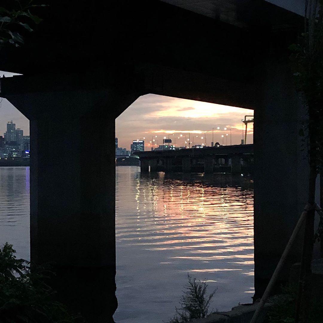 일부러 공원을 등지고 반대편으로 걸어보던 날에는 있는 줄 몰랐던 한강공원 진입로를 발견했다. 집에서 나와 사거리를 두 번 지나고 횡단보도를 세 번 건너 강변북로 아래 어둑한 길이다. 썩 쾌적한 입장은 아니어도 일단 들어서고 나면 걷는 사람에겐 딱이다 싶은 게 이 곳이다. 강 건너 여의도 한강공원은 여럿이 모여 돗자리 깔고 텐트 치고 치킨을 배달해서 맥주도 먹을 수 있는 머무름의 공간임에 비하면 강 북쪽의 공원은 이동하는 경로다. 보행로와 자전거 도로를 가운데 두고 양옆에 초록이 자리하는데 오는 사람도 가는 사람도 한 줄로, 오는 자전거와 가는 자전거도 각각 한 줄로 다녀야 한다. 여럿이 오면 함께 걷기 불편하고, 한 자리 차지하고 앉아 있기엔 초록의 공간이 넓지 않아 이 곳의 사람들은 대게 혼자나 둘이 와서 걷거나 뛴다. 놀러 온 사람은 없어도 머리 위 강변북로에 가득한 차들처럼 어딘가의 목적지로 가는 중인 사람들이 있는 곳, 건물로 치자면 공간들 사이의 복도 혹은 계단 같달까.