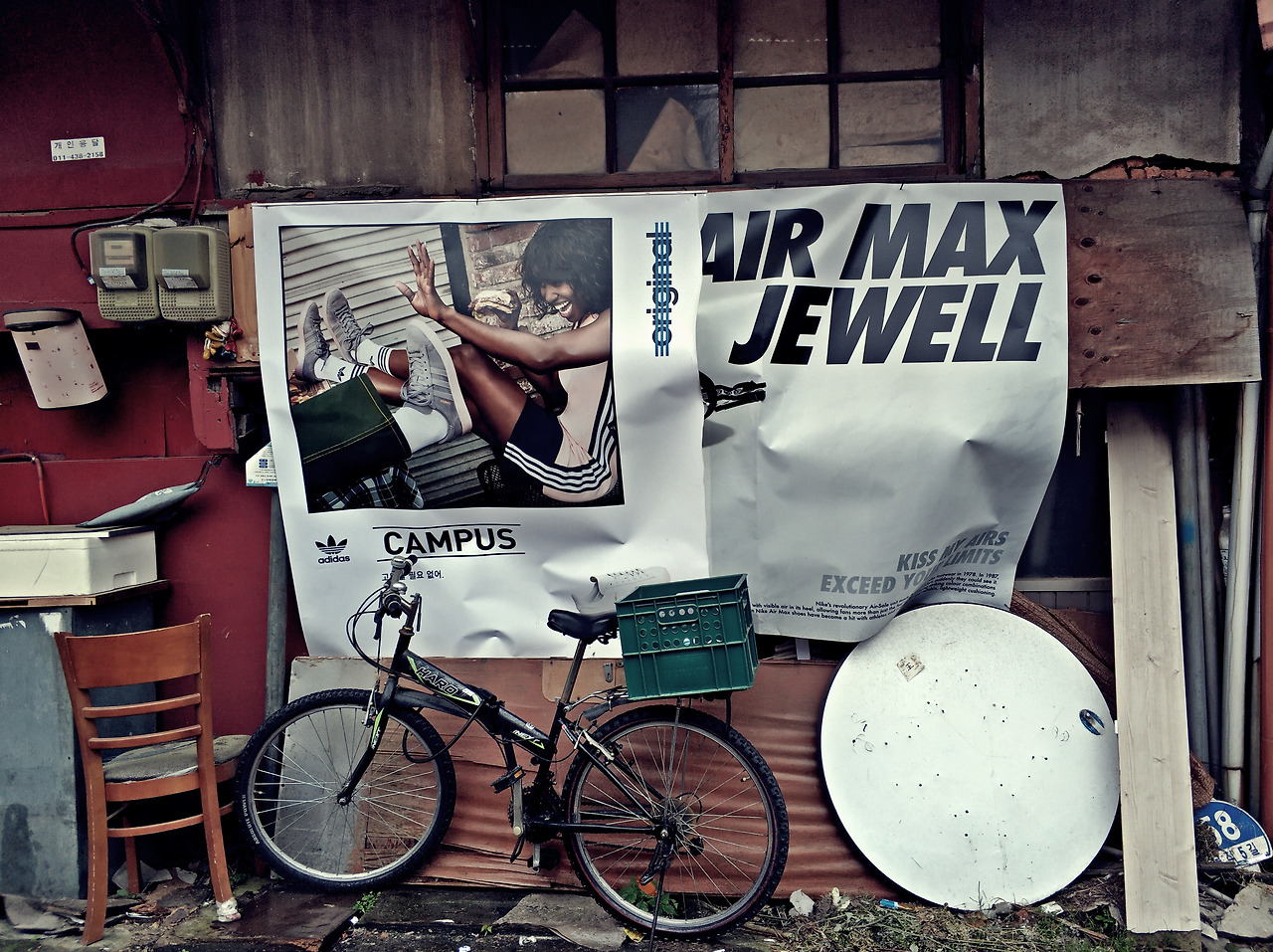 은행동이라면 으능정이와 목척교를 닳도록 거닐어 꽤 익숙한 동네라 생각했는데 선화초등학교 인근으로 다가가니 처음 보는 골목들이 이국적인 느낌마저 주었다. 다 무너진 폐허 같은가 하면 여전히 사람이 드나들며 안에서 영업을 하고 있고, 옛 향취가 담긴 근대 문화유적 같은가 하면 키스 해링과 아디다스의 '힙'한 이미지들이 점령한 골목.