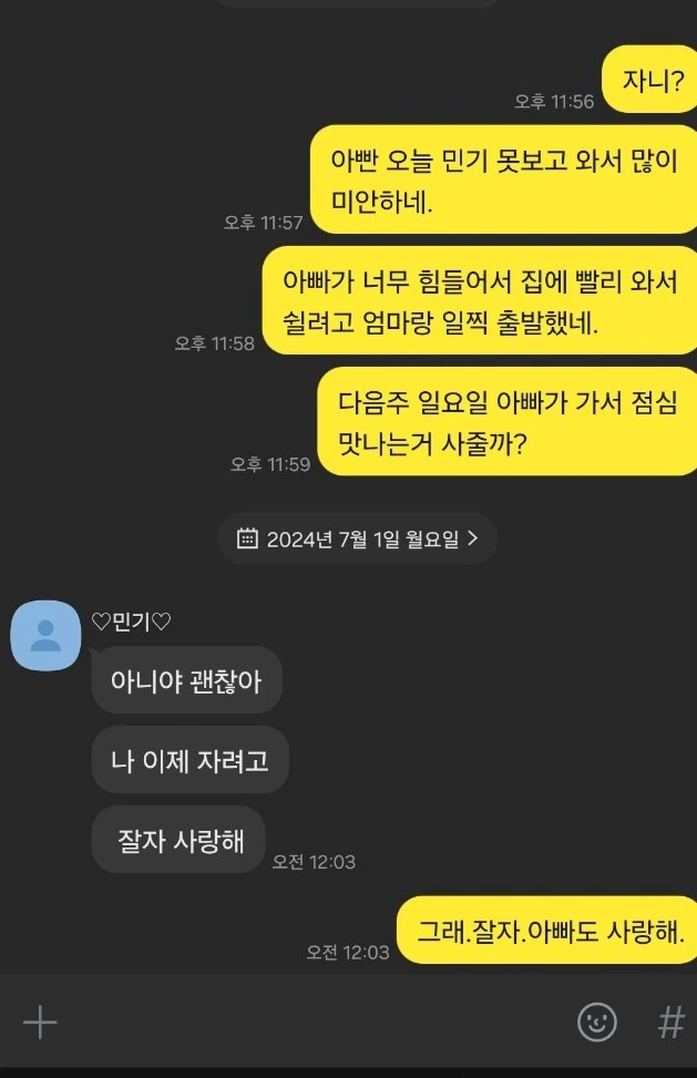 “승찬이가 민기를 많이 좋아해요. 날씨도 좋고 민기랑 속 깊은 이야기도 나눌 시간을 갖고 싶어서 동네 산책을 했다 하네요. 제 수업시간에 말이죠.”