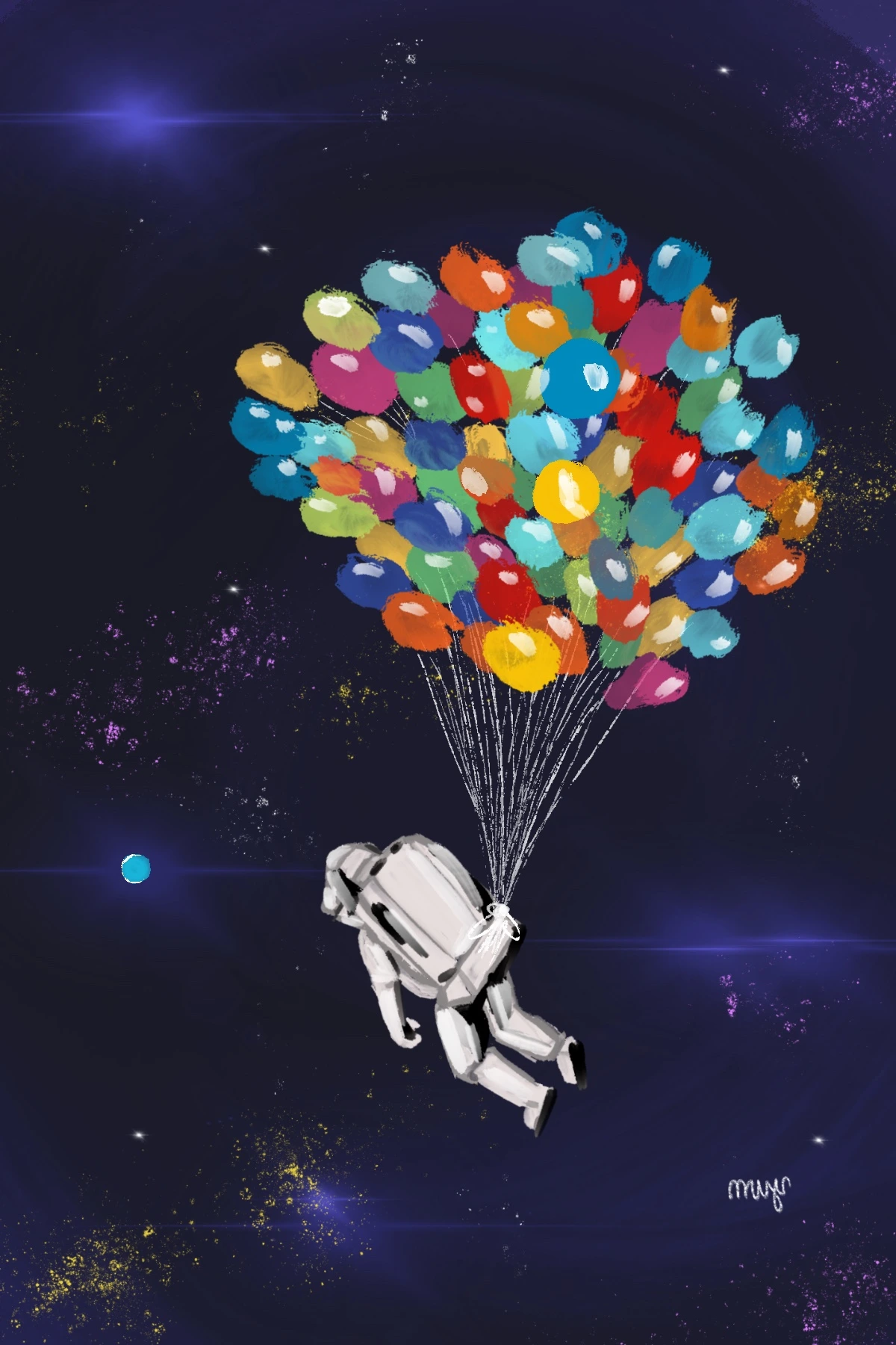 풍선다발을 허리에 묶고 우주 공간을 유영하자