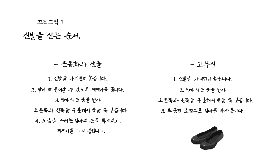 아기든 어른이든, 성취감을 통해 성장해 나가는 과정은 참 비슷한 것 같아요. 곰웅이가 고무신을 신고 벗으며 작은 성취를 하나씩 이뤄나가는 것처럼, 회사에 새로 들어온 신규 입사자도 OJT와 OJL을 통해 실무를 배우고 성취감을 느끼며 성장해 나갑니다.