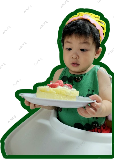 엄마는 하이체어에 곰웅이를 앉히고 케이크 시트를 꺼냈죠.