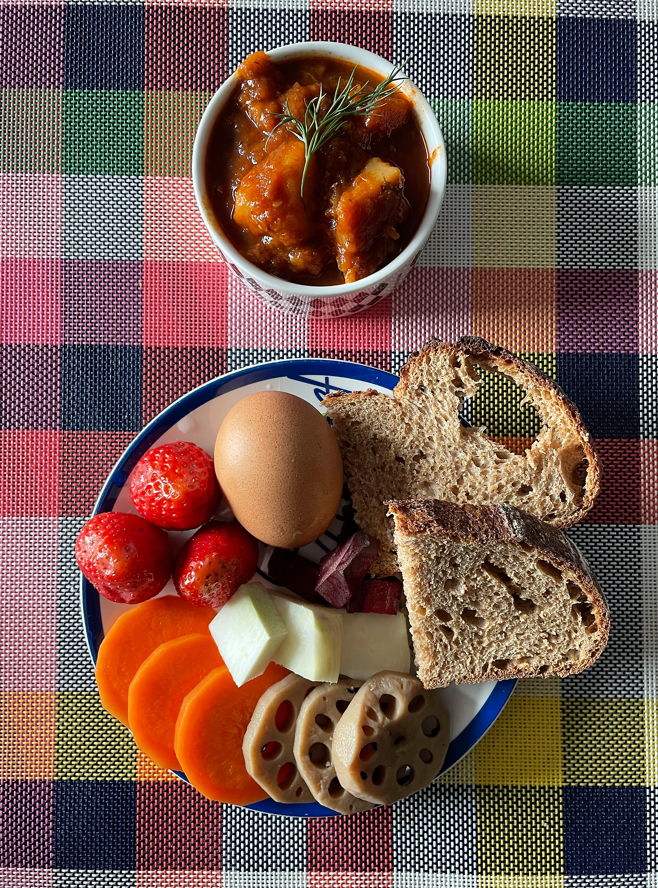 불 조절이 생명이라고 불 곁을 떠나면 안 된다고 해서 2시간을 젓다가 약한 불로 조절 후 또다시 재료가 완전히 익을 때까지 1시간을 더 저어주길 반복하다 보니 어느새 저녁시간이 되었다. 긴장되는 마음으로 호밀빵을 데우고, 토마토 스튜를 한 입을 넣었는데, 3시간을 끓였는데도 당근과 감자는 익지 않은 느낌이었다.