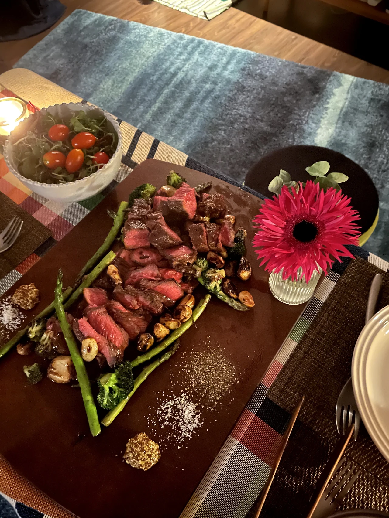 친구들이 집으로 방문하면, 스테이크는 기본이고, 다양한 방식의 샐러드, 밀푀유와 가정식 파스타를 내놓기에 웬만한 레스토랑이 부럽지 않았다. 프로그래머인 신랑은 미각, 후각뿐만 아니라 플레이팅도 멋지게 해서 시각까지 완벽했다.