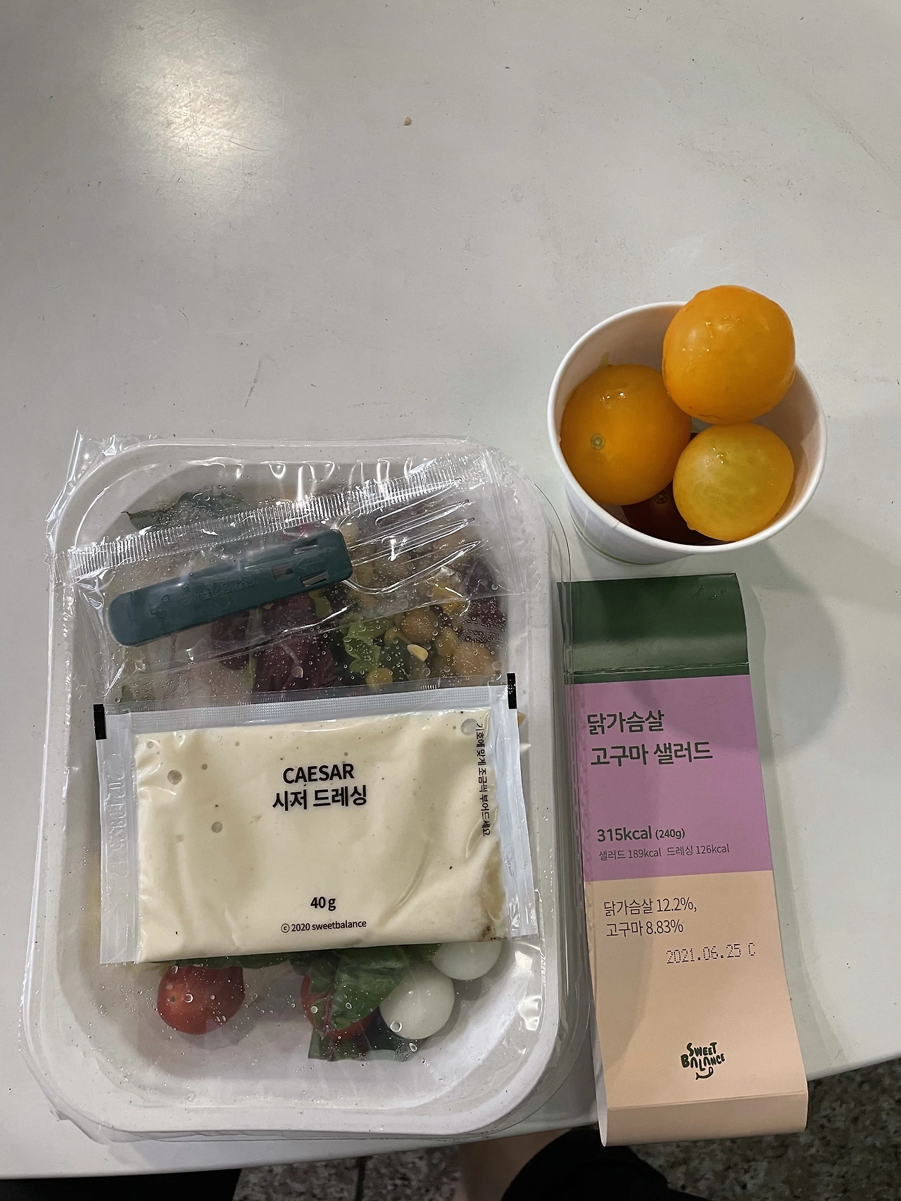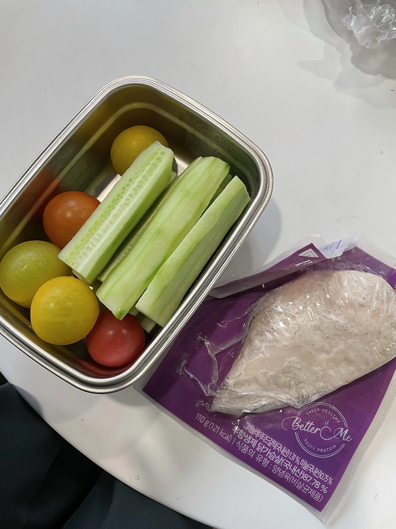 그러면서 야채를 추가하고, 탄수화물을 줄이고, 닭가슴살이나 달걀처럼 단백질 위주로 아침과 저녁 도시락 2개를 싸다녔다. 양질의 단백질과 채소는 다이어터의 좋은 음식이라는 것은 알고 있지만, 이것도 한 달 이상하려니 오랫동안 유지하기가 힘들었다. 매 끼니마다 닭가슴살 100g, 고구마 한 개, 방울토마토를 먹는 건 쉽지가 않은 일이다.