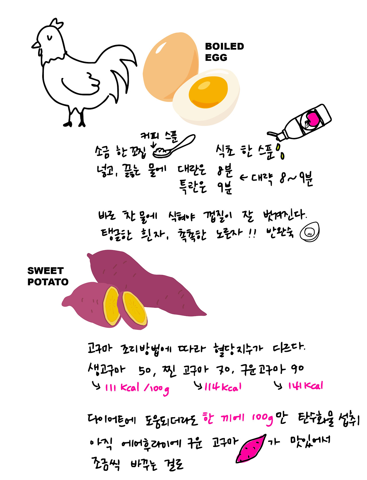 아침의 시작은 베이글, 크로와상 대신 > 그릭요구르트, 삶은 달걀, 고구마