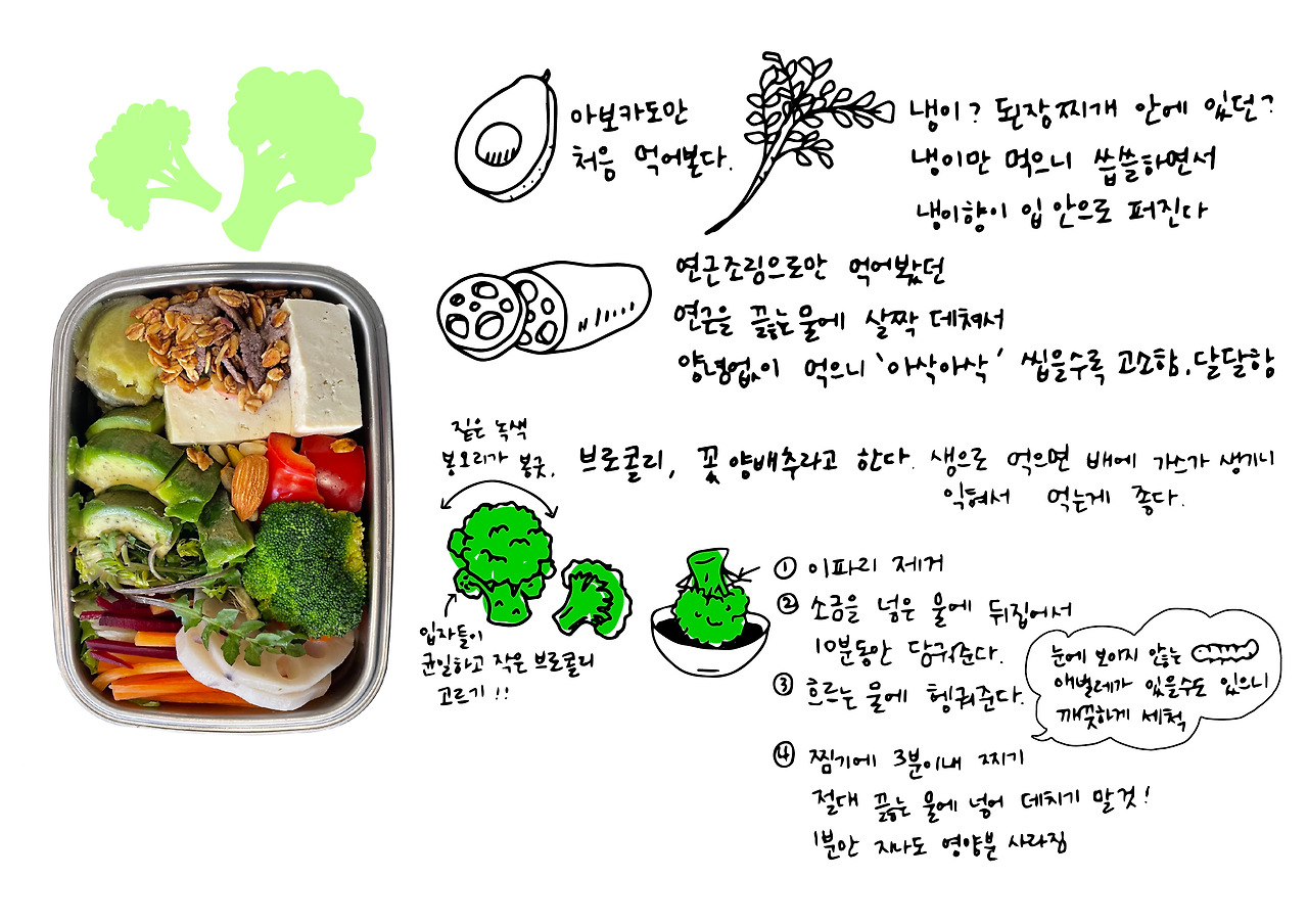 새로운 식재료의 영양성분을 알아보는 과정부터 향과 입 안에 넣고, 씹는 과정들이 재미있다.