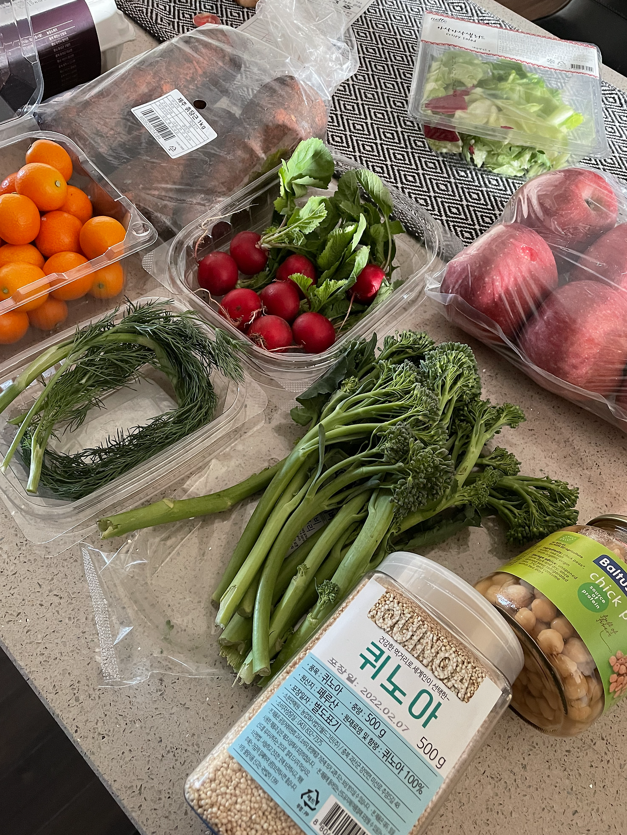20대 이후로 독립생활을 하면서 먹었던 인스턴트 음식과 배달음식, MSG 가득한 음식, 그리고 당이 많은 간식들은 내 몸에 익숙해질 줄 알았는데, 익숙한 게 아니라 참아왔던 것 같다. 이렇게 일상생활이 반복되고, 또 무거운 몸으로 출퇴근을 10년 이상하다 주말에는 알코올과 폭식을 하며 잠자리에 드는 게 익숙해질 때 즈음 난 변화를 원했나 보다. 샐러드 가게에서 먹어본 재료들이 입에 맞으면 이게 뭔지 검색해보고, 구매해서 시도를 해보기 시작했다.