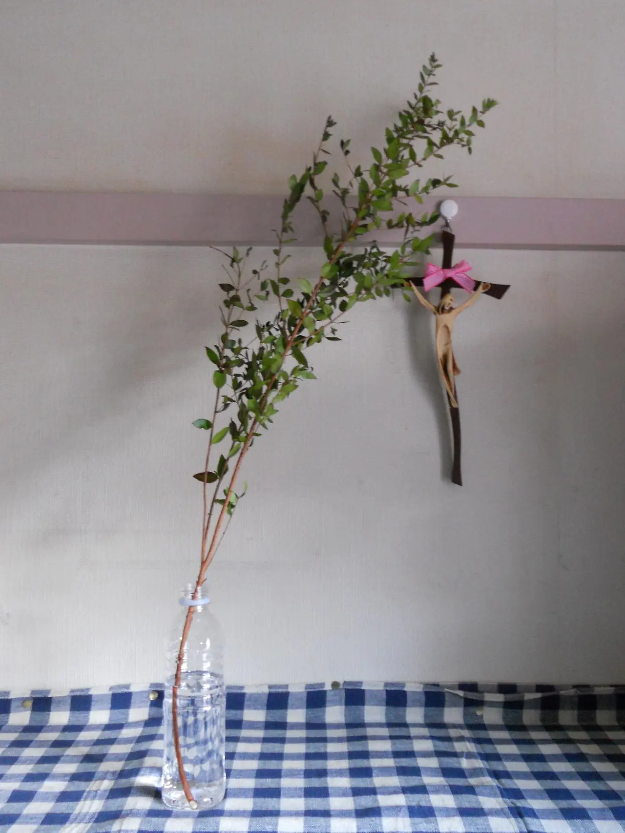 아래 사진은 일본 기숙사에 두었던 일본스타일의 성지가지, 아니 엄밀히 말하면 일본 스타일이라기보다 '도쿄 시모키타자와에 있는 세례자요한 성당' 스타일의 성지가지와, 유학을 떠나기 전 프란치스코 신부님이 일본 잘 다녀오라며 주셨던 십자가이다. 기숙사방 한쪽에 저렇게 두었더랬지. 우리집에 있는 십자가에는 거의 다 저렇게 리본이 붙어있다. 나는 노트북이나 기타 악보를 모아둔 파일 같이, 중요하거나 좋아하는 물건엔 스티커든 뭐든 장식을 하고 싶어 하는 편인데, 예수님은 예쁘고(?) 내가 좋아하고 또 소중하니까.