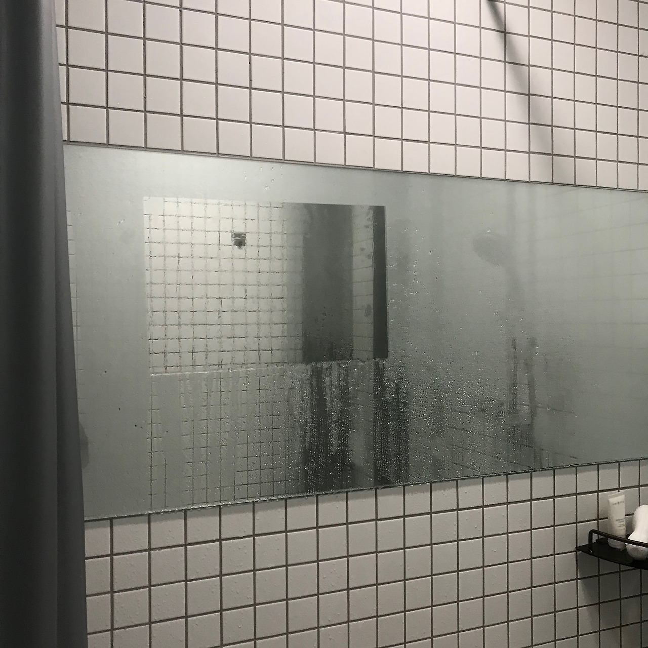 그 첫 에피소드로는 지난주에 다녀온 제주도 출장에서 꽂힌 관찰 포인트를 소개하고 싶다. 우리 회사와 제휴를 맺게 되어, 제주도 성산에 위치한 플레이스 캠프라는 호텔에 숙박을 하였다. 제주도에서 서울로 진출한, 몇 안 되는, 이례적이라 불리는, 카페 도렐(Dorrell)의 본점이 있는 곳이다. 이 호텔의 방은 좁은 공간에 최소한의 것들로만 구성되어 있다. 침대, 화장실, 작은 스툴과 테이블 하나. TV도 없는 데다가 무채색의 모던한 인테리어로 혹자들에게는 '감옥 호텔'이라고도 불리더라. 방에 있으면 마치 인테리어가 잘 된 감옥에 있는 것 같다는 평이다. 사실 플레이스 캠프는 이렇게 방을 기획한 데에는 확실한 이유가 있다고 했다. 액티비티 프로그램들에 힘을 주고 있는 만큼, 방에만 있지 말고 나와서 많은 것들을 보고 듣고 체험하고 활동해보라는 기획자의 의도를 녹인 것이다. 그런 최소한의 구성으로 옹골진 방에서 샤워를 하다 문득 거울을 보았다.