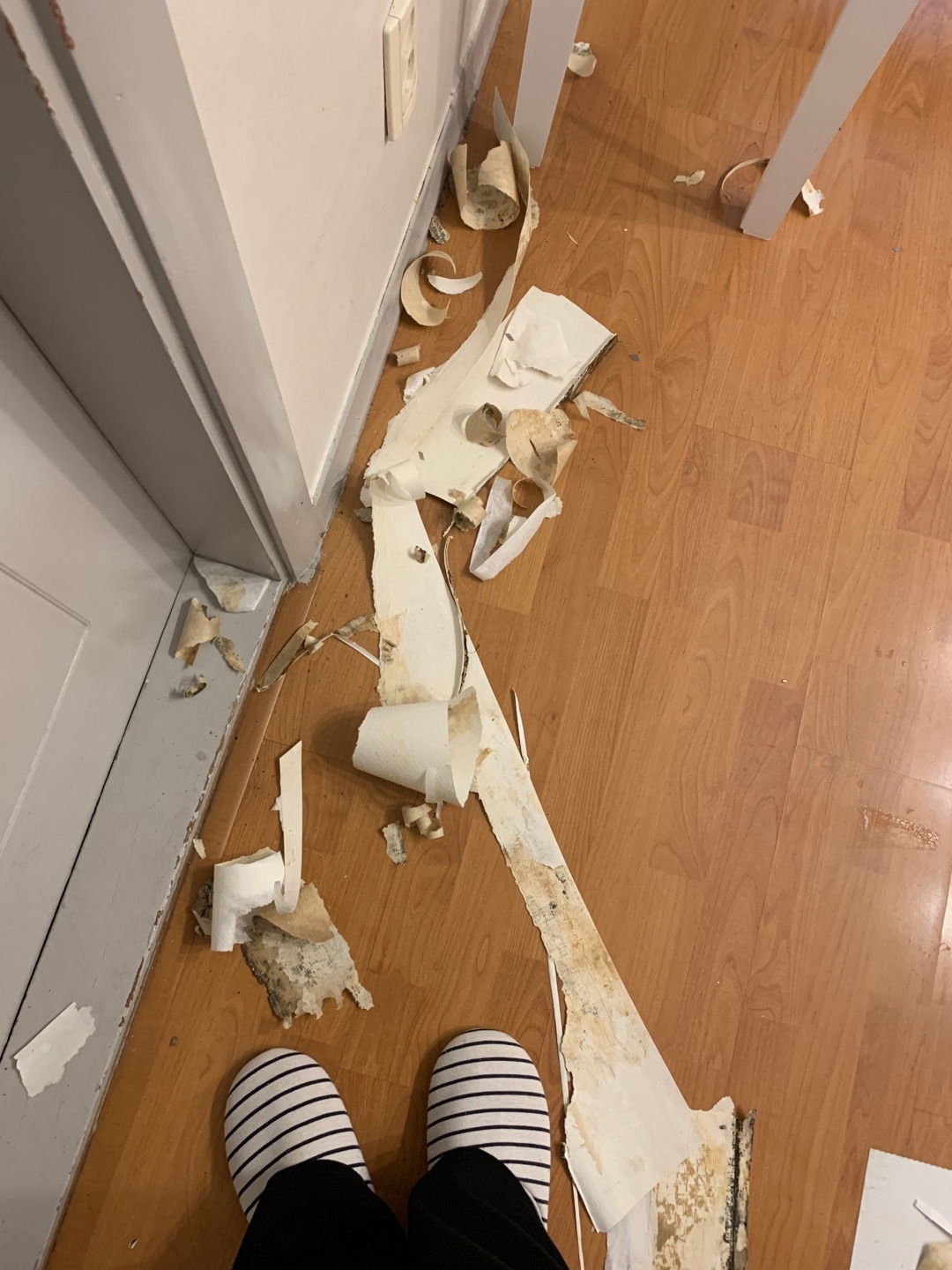 요즘 에어비앤비에서 생활하고 있다. 외국인 게스트를 받지 못해 놀고 있는, 우리 가족이 같이 운영하는 에어비앤비에서 내가 잠시 지내고 있다. 에어컨 청소도 속 시원하게 끝내고, 코로나 팬데믹 이전에는 고치고 싶어도 연이은 예약으로 손도 못 댔던 자잘한 보수작업도 직접 쳐내가고 있다. 슬픈 말이지만 코로나 덕에 남는 게 시간이고 나라는 인력이라서. 그 와중 다행인 건 신이 주신 적당히 어설픈 재능으로 어지간한 건 인터넷에 의존해서 스스로 목장갑 끼고 뜯고 고치고 할 수 있는 여성으로 성장했다는 것이다. 그리 지내던 중 어느 날, 거실과 부엌 천장에 전에 없던 누수 흔적이 생기기 시작했다. 갸웃거리며 휴지로 닦아보니 곰팡이스러운 점들이 쓱 닦였다. 찝찝해하면서 자고 일어났더니 하루 만에 천장에 곰팡이와 누수 얼룩 파티가 요란하게 열렸다.