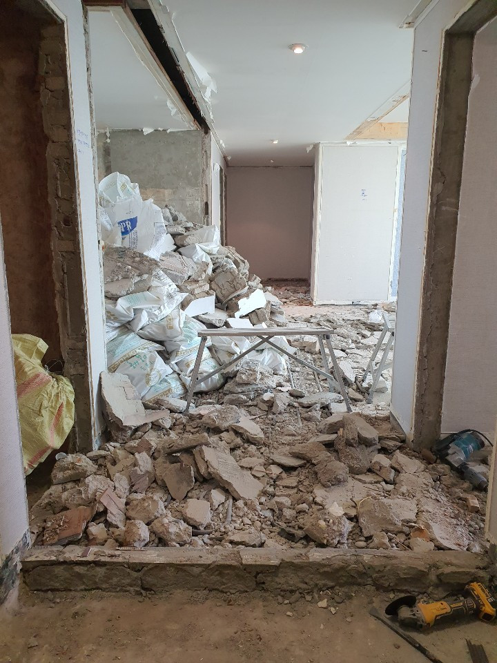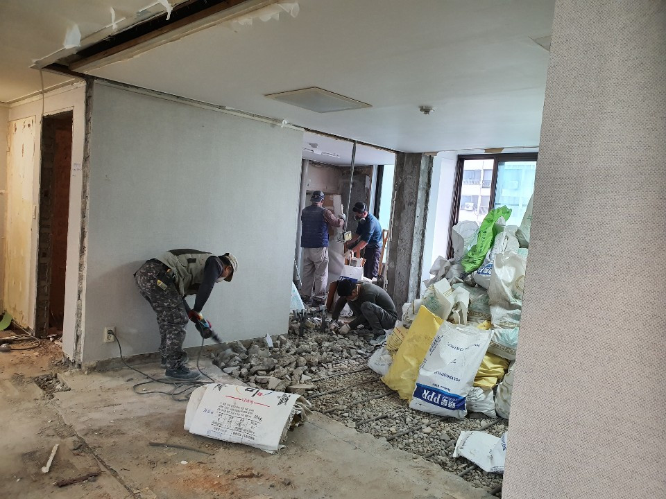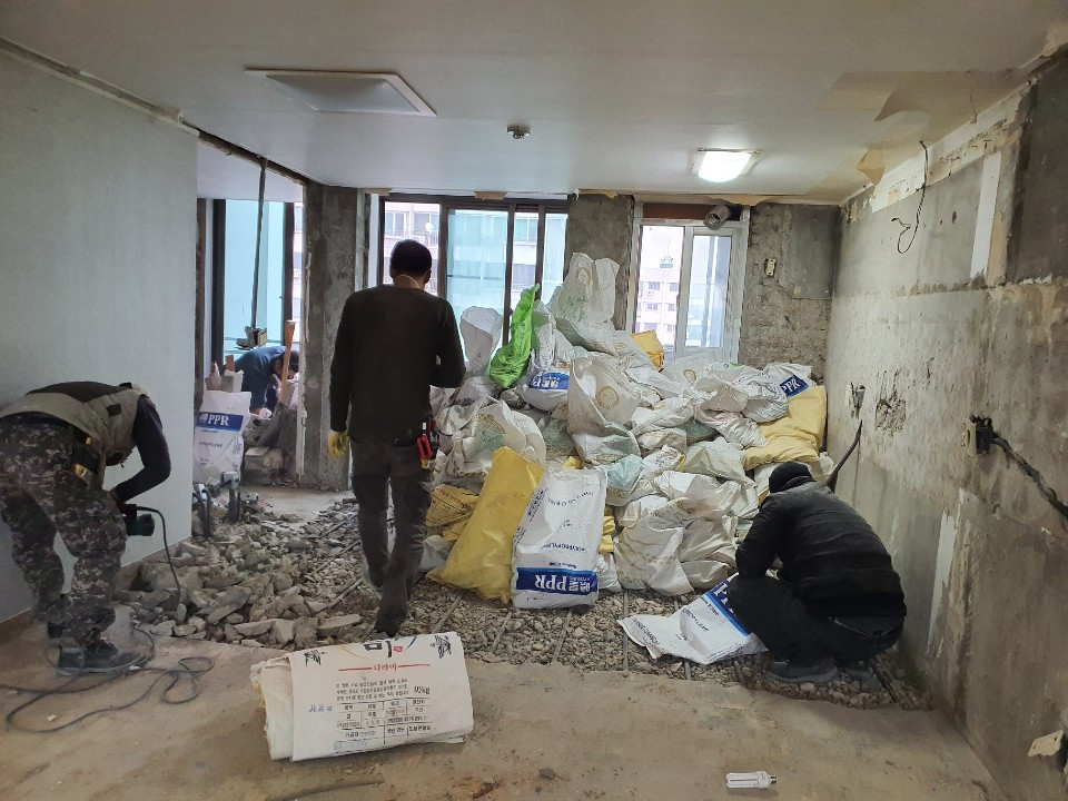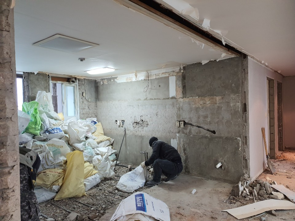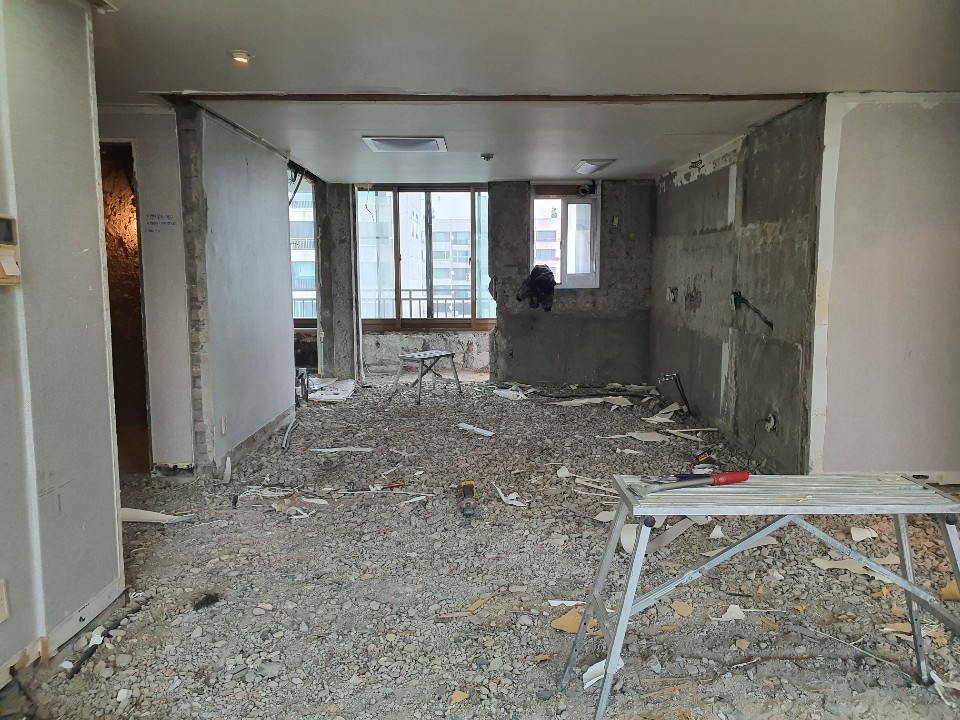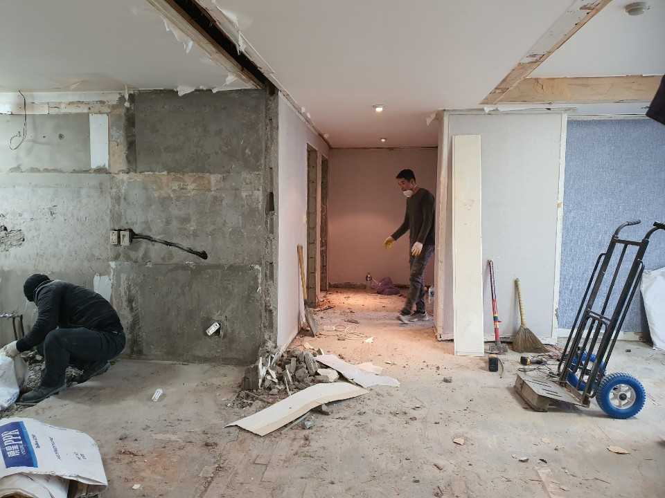 마루철거가 완료되고 그다음날 전체철거에 들어간다. 싱크대를 드러내고, 욕실에 있는 도기들이 다 드러내지고, 욕실타일 떠받이 공사를 위해 타일도 제거가 된다. 내가원했던 구조로 날개벽들이 철거가되고 교체되기로한 문도 철거가 된다. 바닥에 배관난방공사를 위해 바닥 콘크리트도 드러낸다. 흡사... 집을 부시는 것 같다..