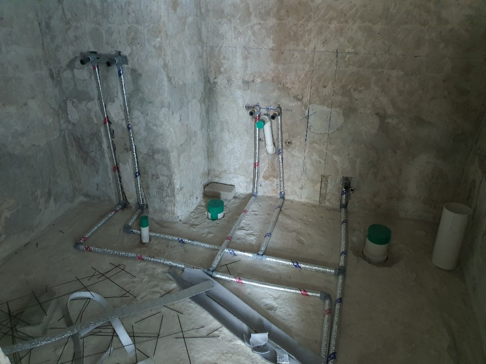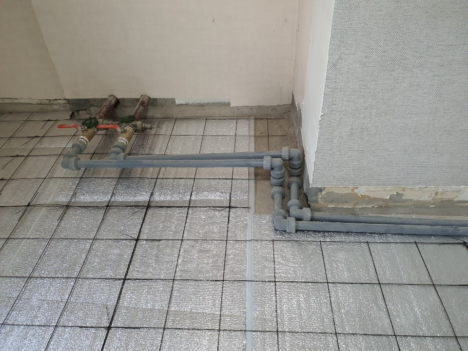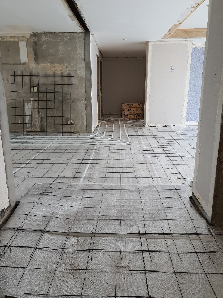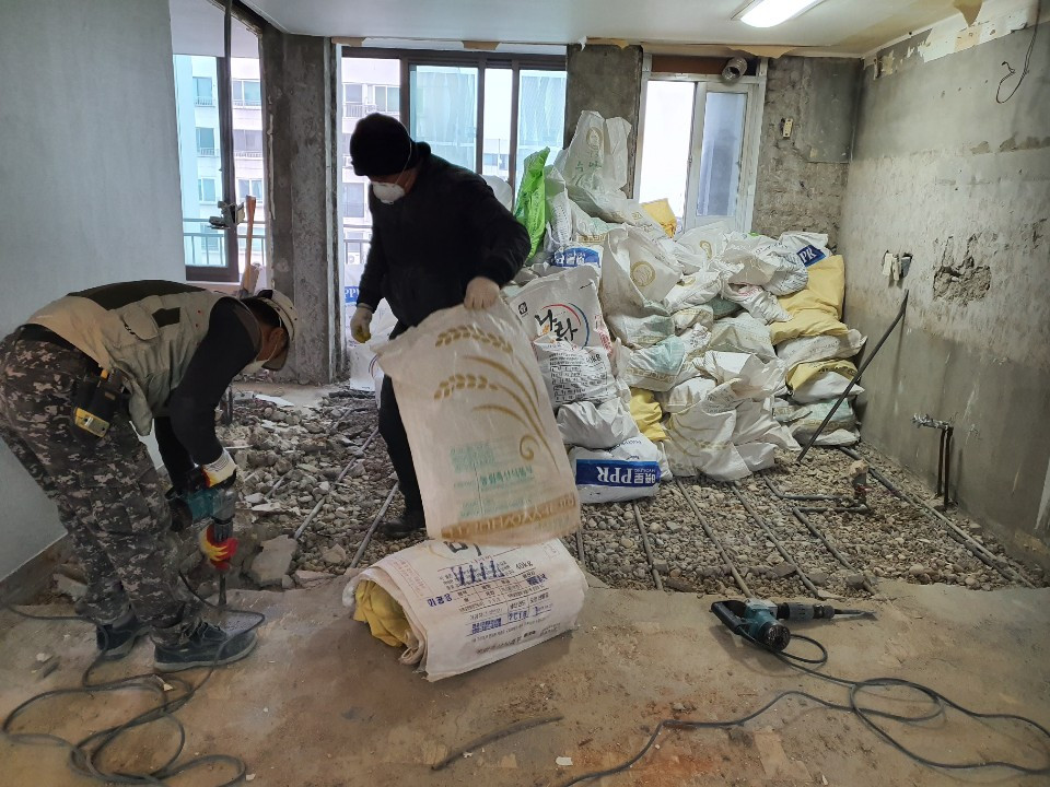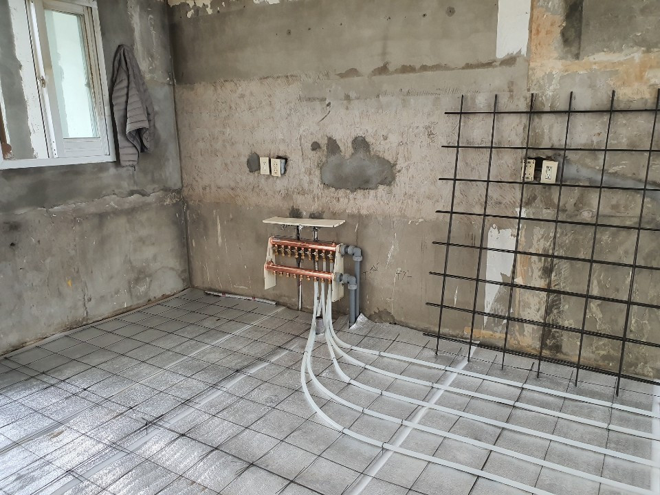 전체철거가 완료가 되고 폐기물처리까지 되었다면 배관난방을 새로 싹 까는 작업을 한다. 이날은 소음날것이 없어 조용히 진행된다. 새로 난방관이 깔리면 사진을 공간별로 찍어놓는 것이 좋다. 난방관이 어디로 지나가는지 나중에 덮고나서 파악하기가 좋다.