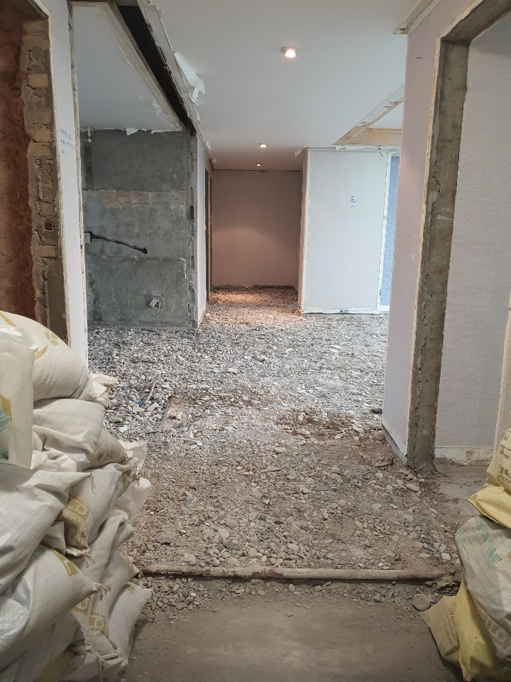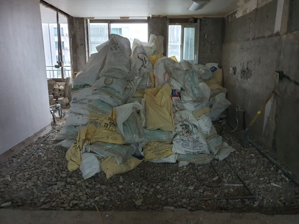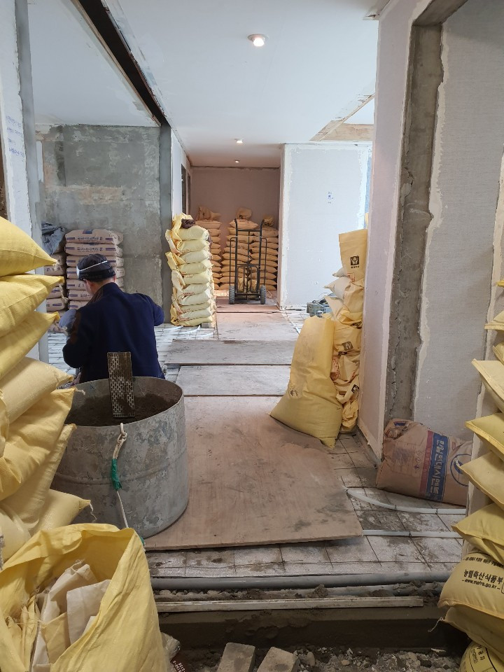 새로운 배관난방의 설치가 끝나면 미장공사가 진행이 된다. 위에 시멘트를 까는 것이다. 미장공사는 기계미장이 있고 손미장이 있는데 집 상태에 따라 기계미장이 가능한지여부 파악이 된다. 파악은 설비해주시는 분들이 해주신다. 우리집은 상태가 너무 좋지않아 기계미장을 할 수 없다고 하셔서 하는 수 없이 손미장을 진행하였다. 기계미장을 하여야 바닥이 평평하고 깔끔하게 나올 수 있다. 아무래도 손미장은 수제로 하는 것이라 미세한 울퉁불퉁이 있고 느껴진다.. 불가능한데도 기계미장을 진행시 아랫집이 피해를 볼 수 있다하니 하는 수없이 손미장을 진행하였다. 기도하자.