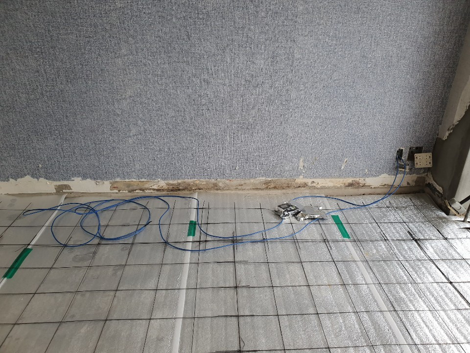 시멘트로 미장을 하기전에 바닥으로 전기선 깔기