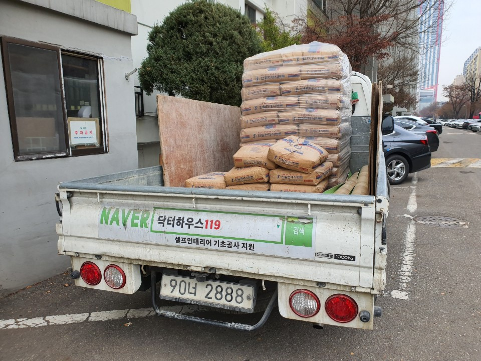 소음이 어마무시하다. 폐기물들은 하루에 모았다가 사다리차로 내려보내처리하였다. 사전에 엘리베이터 사용가능한지는 확인해야하지만, 우리아파트의 경우 재건축예정인지라 너무 낡아서 폐기물처럼 무거운 것들을 실어나를 수 없다하여 사다리차비용을 지불하고 사다리차를 이용한 것이다.