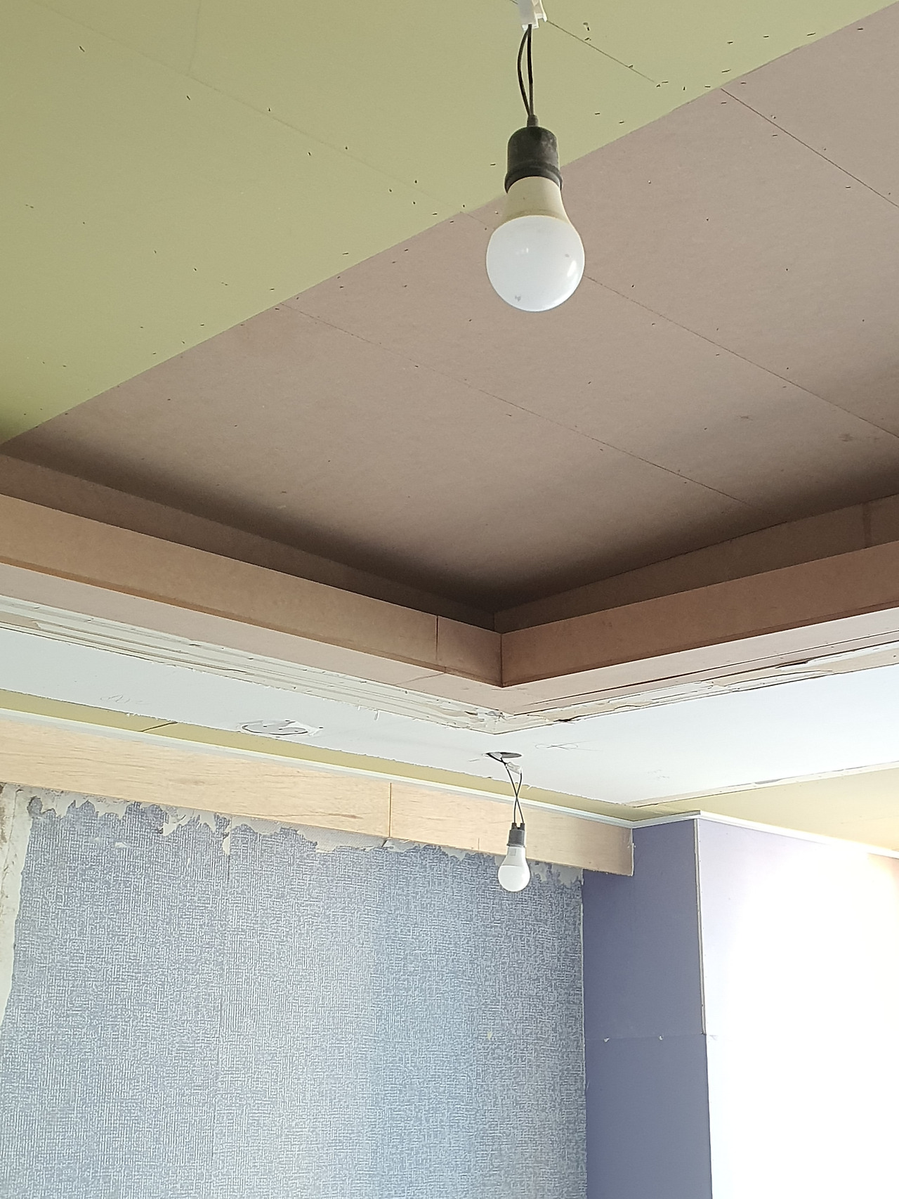 거의 기존의 우물천장 모습, 간접등이 들어간 형태가 아니고 그저 우물만 파져있는 형태라 답답한 느낌이 여전하여 간접등이 들어간 우물천장으로 바꾸기로했다.