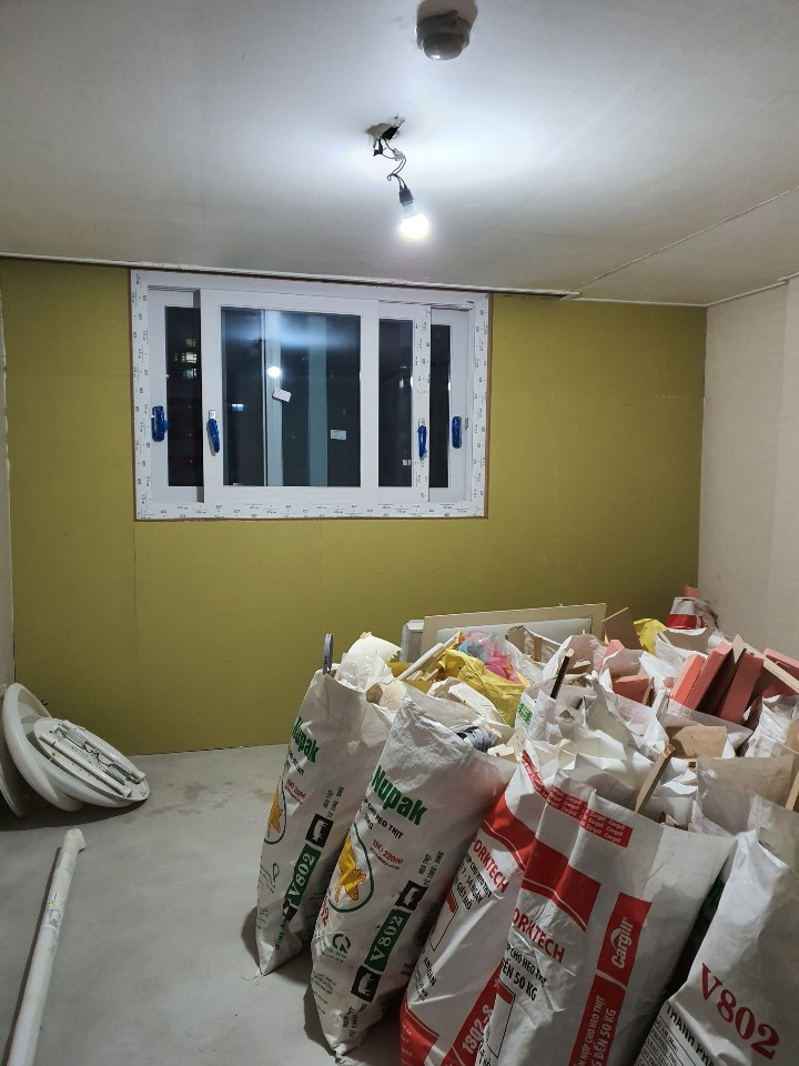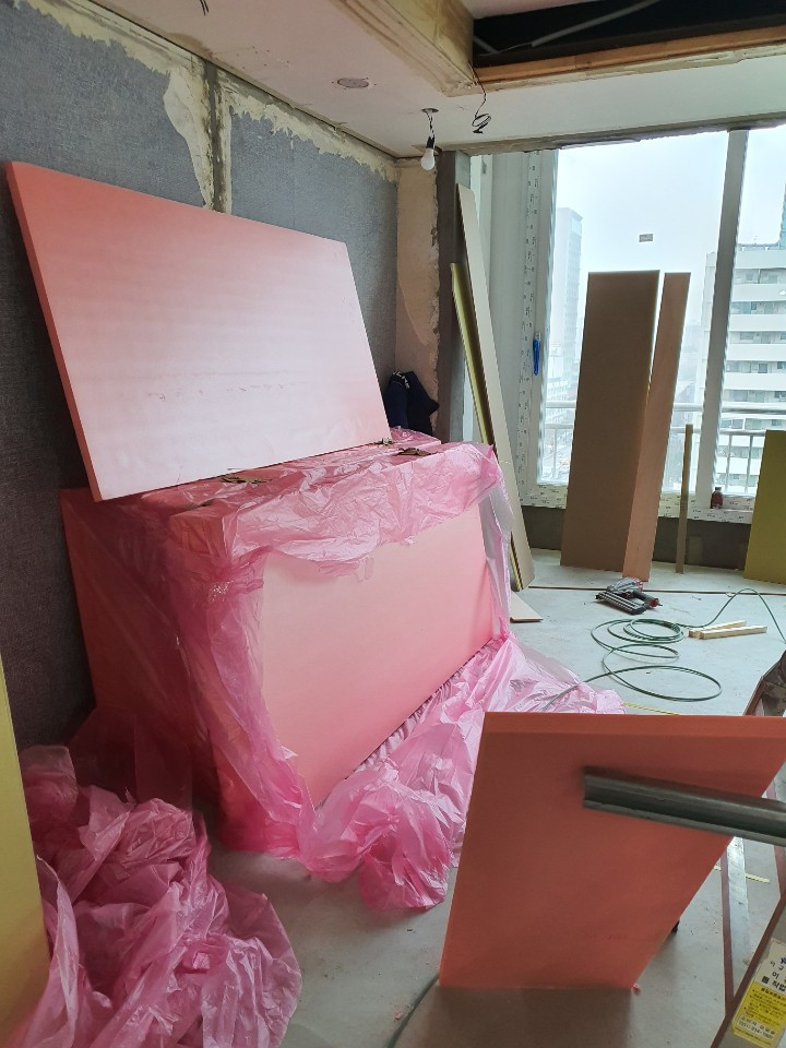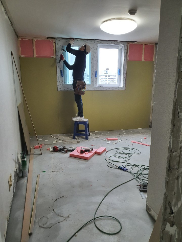 먼저 앞 창호편에서도 설명했듯, 창호를 교체하게되면 창호와 벽간에 틈이 생긴다. 그렇기 때문에 창호를 교체하고나면 단열제로 보강을 해주는 작업이 필수이다. 또한 낡은 아파트라 겨울에 추울 것을 대비하여 두꺼운 단열제로 전체 단열제를 두르는 공사를 진행했다. 30년 이상 된 아파트라면 기존에 단열공사가 되어있지않은 집이라면 특히나, 단열공사를 하는 것을 추천한다. 오래된 아파트는 보일러를 아무리 틀어도 웃풍이 도는 집도 있고, 그저 추운집들도 많은데, 우리집은 단열공사를 잘 해서 그런지 한겨울인 지금 보일러를 반밖에 안틀어놨는데도 너무 더워서 창문을 열어놔야하는 지경이다.