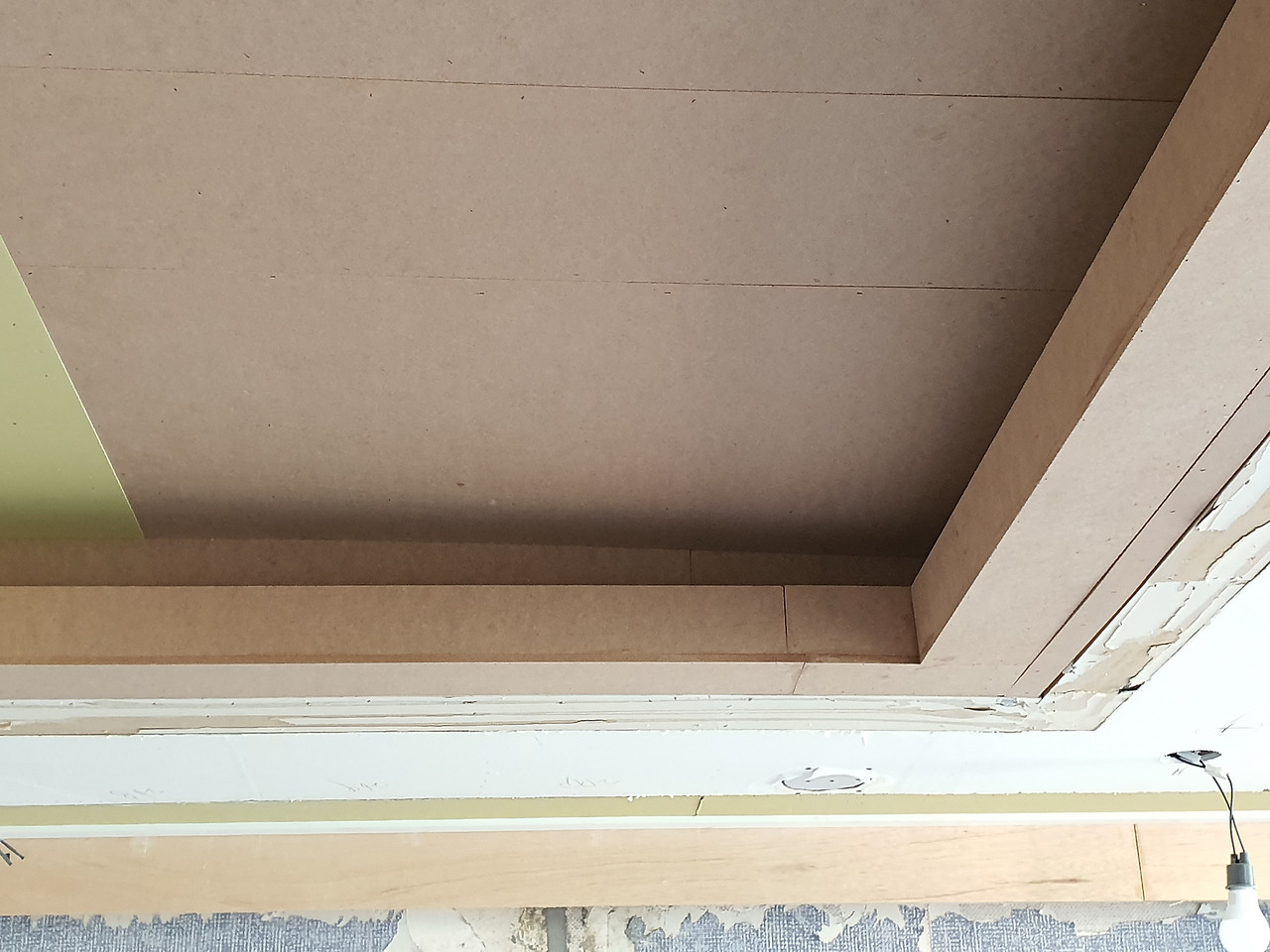 기존에 우물모양이로 천장이 파여있긴했는데 그 크기가 너무 작아서 가로세로 더 확장하여 우물천장을 크게 키우고 싶어서 요청을 드렸다. 작업자 한분께서 오전 반나절 동안 천장에 기존 합판을 제거하시고 알아내신 사실은 앞쪽에도 옆쪽에도 대들보가 지나가서 더 확장을 할 수 없는 것이었다.