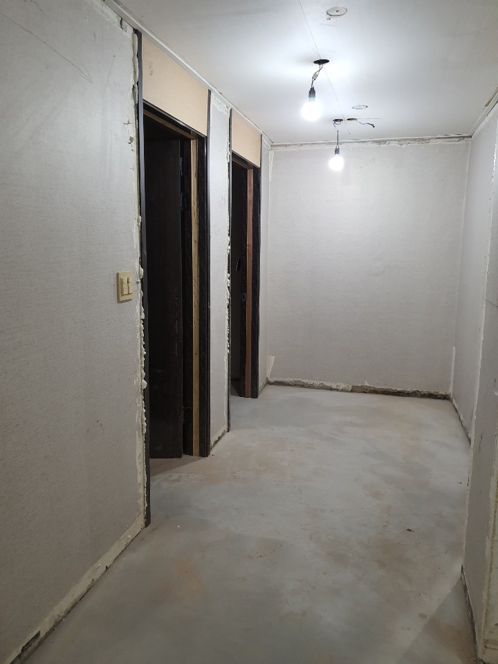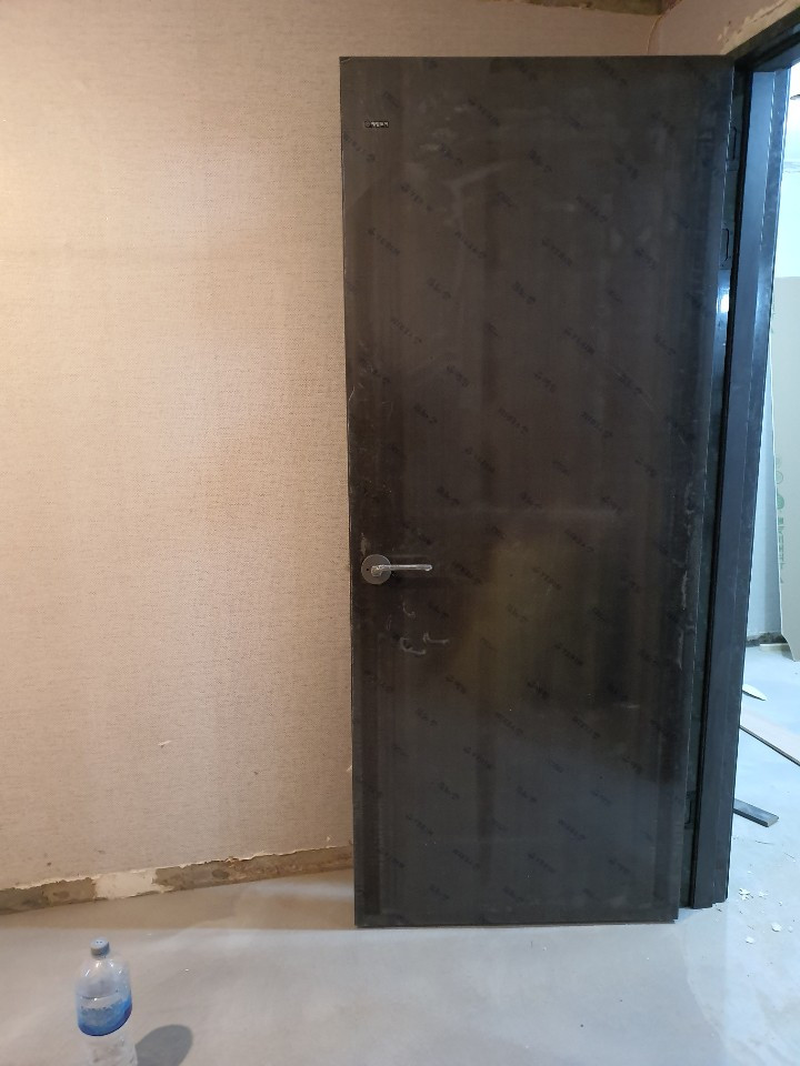 문 교체하는 것도 목공단계에서 할 수 있다. 기존에 문과 문틀이 일체형이 있었던 나무문이었다. 기존부터 문이 너무 낡아있기도 했지만 전체 철거단계에서 문이 여기저기 찍히면서 그냥 새로 싹 교체하기로 하여 문과 문틀을 모두 철거해낸 상태였다. 사전에 목공 소장님께 문의 색상 및 모양을 주문했다. 문 손잡이는 미리 사놨다가 목공 하는날 작업자분께 전달하면 달아주신다. 요즘에는 무문선 시공도 많이하는데, 천고가 낮은 우리집 상황에서는 문선높임으로 위아래가 길어보이는게 좋을 것 같다는 생각이 들어 문선높임으로 문을 시공하였다.