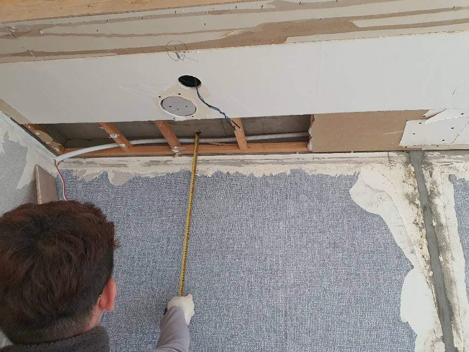 천장공사가 꼭 필수는 아니지만, 예전에 지은 아파트의 경우 요즈음 아파트에 비해 천고가 낮은 집들이 많다. 요즘 신축 아파트의 평균 천고가 2400mm라면 우리집은(방과 거실과의 오차또한 있지만) 2200mm 였다. 평균 아파트 천고보다 20센치나 낮은 것이다. 자칫하면 너무 답답하게 느껴질 수 있는 천고의 높이였다. 그래서 진행하였던게 거실에 우물천장 파기였다.