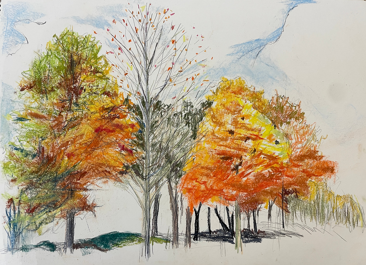 말라가고 지느라 원래의 형태에서 완전히 쪼그라진 잎사귀의 어두운 빛깔이 밝은 라임과 금색을 띤 온전한 잎사귀와 대비되어 만들어진 풍경은 그동안 수없이 반복해서 봐왔을 계절의 모습이건만 내눈앞에 처음으로 그 아름다움을 드러냈다. 지구온난화로 인한 이상낙엽현상인가, 아니면 중년에 접어든 세월의 성숙함이 선사한 새로운 시각덕분인가? 저물어가는 것이 이렇게 아름다워보일 수 있다니...