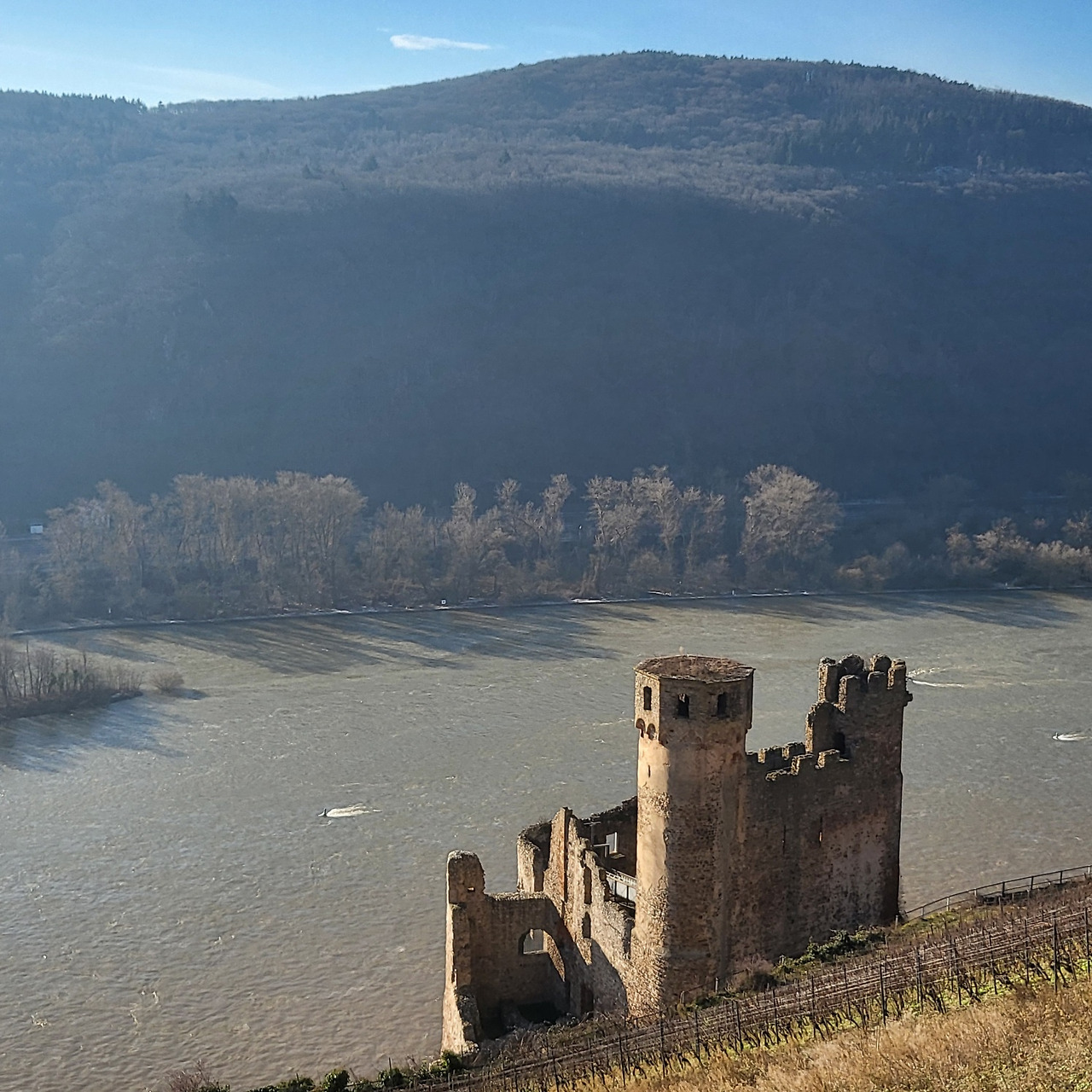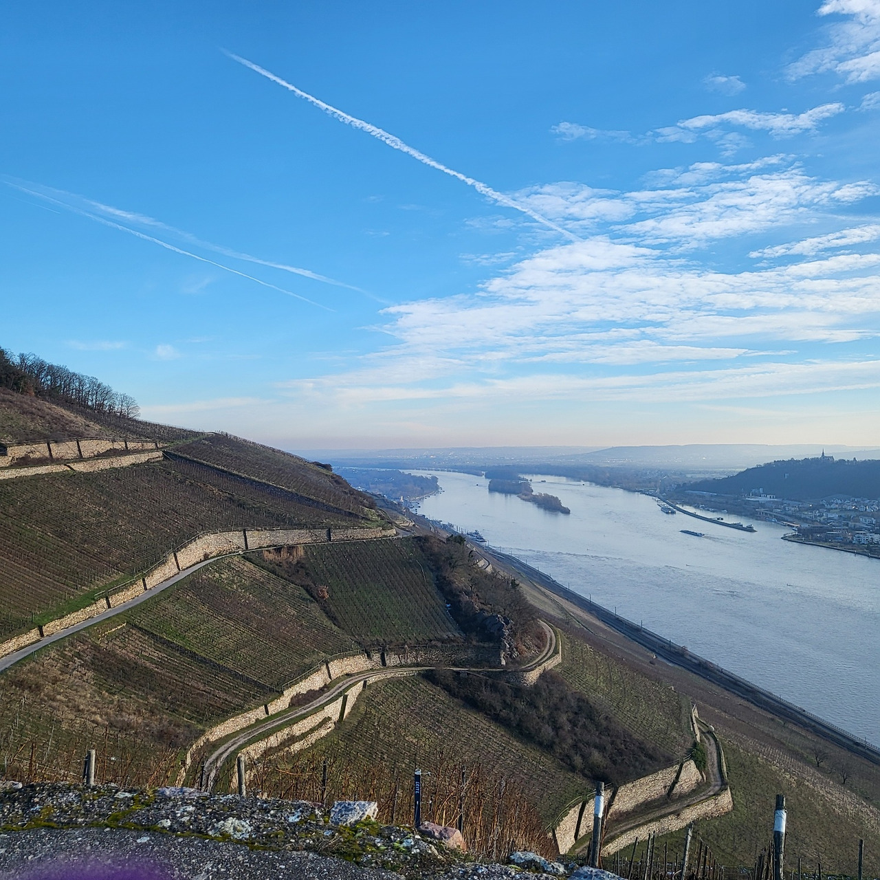 산책을 좋아하는 버티나와 함께 포도밭 사이로 난 언덕길을 이틀간 걸었어요. 옛 친구와 끊임없이 담소를 나누며. 완벽한 힐링의 시간이었지요. 확 트인 하늘아래 도도히 흐르는 강을 따라 오르내리는 기다란 배들, 그 배로부터 통행료를 받았다는 잔재만 남은 낡은 성, 구름 사이로 빗살처럼 퍼져내리는 햇살, 새로운 봄을 기다리며 비탈길에 줄지어 서있는 포도나무줄기들. 나무로 세워 놓은 포도주 자판기옆 나무 의자, 라인강을 지키는 여신의 거대한 동상, 꼬불꼬불 올라가는 산비탈길, 버티나 부모님이 잠들어 계신 햇살 좋은 공동묘지. 중세에 지은 건물, 기찻길, 이탈리안 레스토랑의 유쾌한 총각. 이제는 다 커버린 버티나의 젊은 아들들, 쥴리어스와 콘스탄틴.