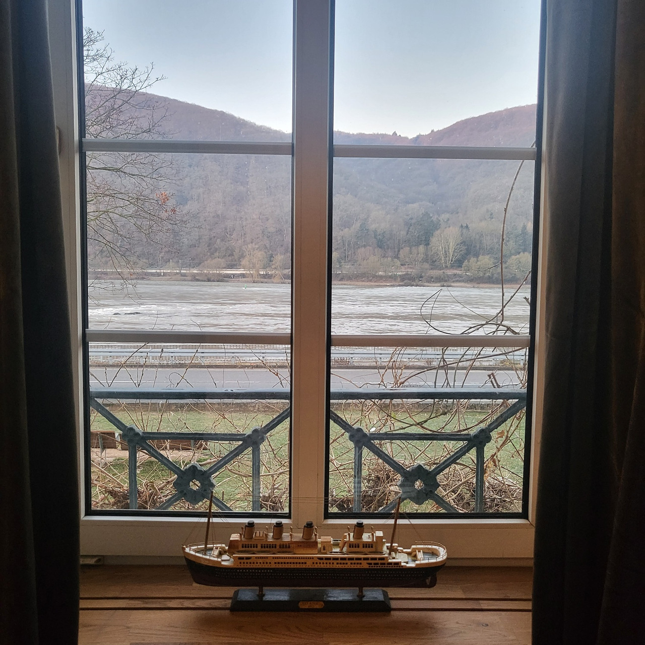 친구의 집은 커튼을 걷으면 라인강이 바로 코 앞에 흐르는, 오래된 호텔 건물입니다. 현재는 2층을 모두 사용하는데 손님을 위한 방도 두 개 있어요. 19년 전 여름에 딸과 함께 방문해서 묵었던 적이 있는데, 이번에는 그 옆방에서 혼자 잤어요. 내 인생 모든 여행을 통틀어 최고급 스위트룸이었어요. (늘 호스텔에서 자는 수준이었으니 그럴 만도 하지요) 이틀을 그 아늑한 방에서 창너머 라인강을 바라보며 여행의 피로를 다 풀었답니다.