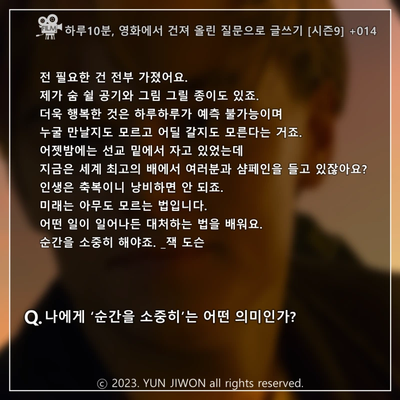 순간을 소중히 : 소소인문 온라인 글쓰기 <영화에서 건져올린 질문으로 글쓰기> 9기