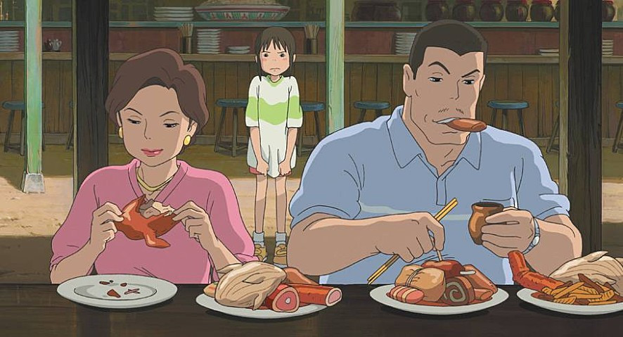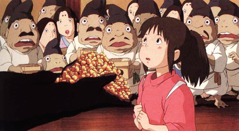 <센과 치히로의 행방불명>에 나오는 어른들은 욕망에 사로잡혀 진짜 소중한 것을 잃어버린다. 치히로의 부모님, 유바바, 그리고 온천장에서 일하는 이들. 소중한 것을 잊고 눈 앞의 욕망만 따르는 그들의 모습이 낯설지가 않다. 치히로의 부모님은 눈 앞의 음식에만 몰두하느라 치히로가 사라진 것도 모른다. 유바바는 가오나시가 만들어낸 금을 쌓아놓고는 흐뭇해하느라 하나뿐인 아들 '보'가 사라진 것도 알아차리지 못한다. 가오나시가 금을 만들어 내자 온천장의 직원들은 그의 환심을 사려고 아부한다. 온천장 영업시간도 아닌데 음식을 내오고 춤을 추며 잘 보이려 한다.