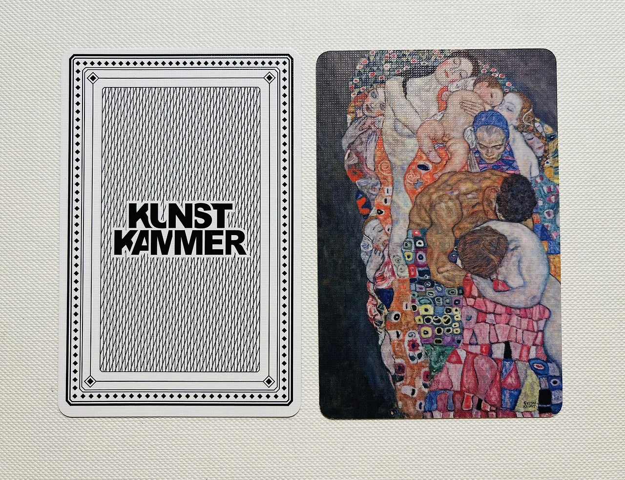 누쏠: 인터뷰 오는 길에 샘플을 받았는데, 정말 예쁘더라고요. 판매 카드는 다음 주 정도 출시된다고 들었습니다. 오늘은 <죽음과 삶> 카드에 대해 이야기 나누려고 하는데요. 카드 제작자가 원본 작품을 의도적으로 잘라 사용한 점이 인상 깊었는데, 이렇게 카드를 직접 받아보니 그 의도를 알 수 있을 것 같아요.