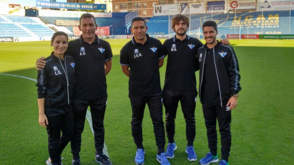 Juan Carlos Goméz 감독(가운데). 에시하를 3부 리그로 승격시켰지만 이듬해 시즌 중간 팀의 성적이 흔들리며 경질당했고 그 해 팀은 결국 강등되었다.