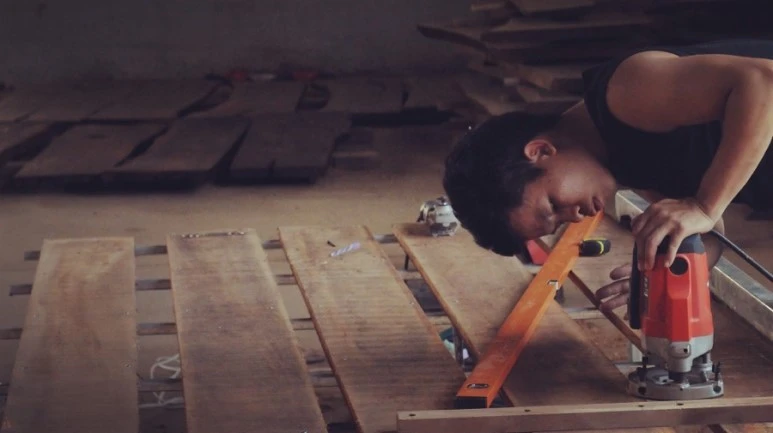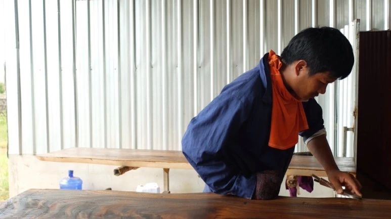 박 사장님과 현지 공장장 폰이 우드슬랩을 함께 제작합니다. 라오스 공장장 폰은 박 사장님의 노하우를 배웁니다. 로이스트 한국은 라오스 사람들이 경험하지 못한 제품 제작의 디테일을 전수합니다.