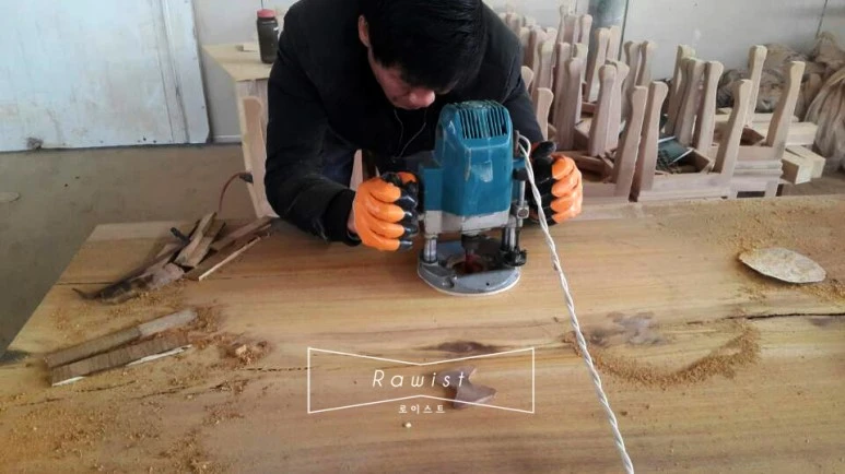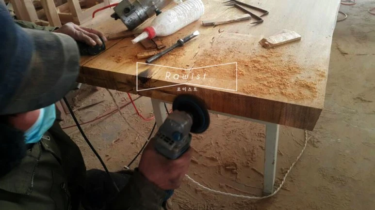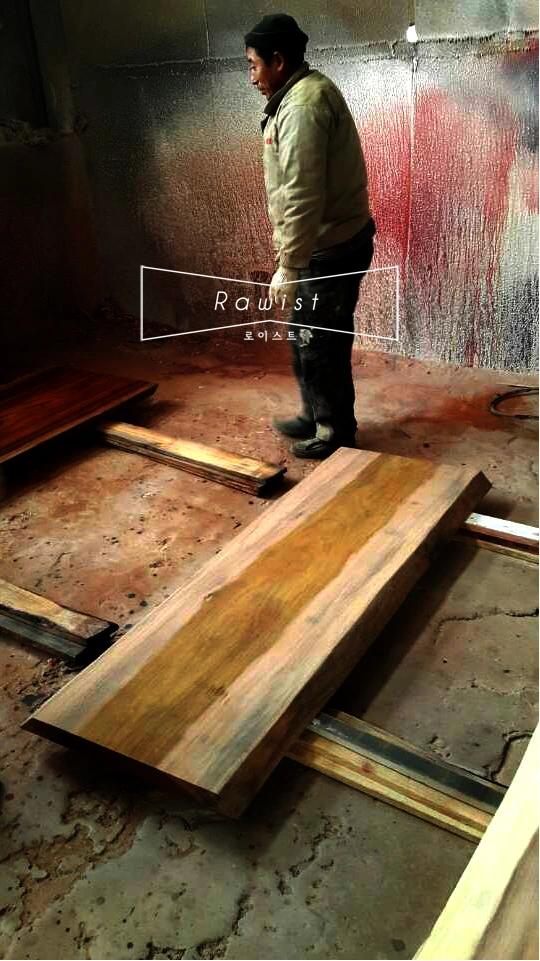 1차 입고될 로이스트 우드슬랩은 중국 공장에서 만들었습니다. 원목을 구입하여 바로 제재 한 다음 중국 00 공장에 와서 가공 제작합니다. 김 사장과의 오랜 친분을 통해 이분들이 함께 해 주었습니다.