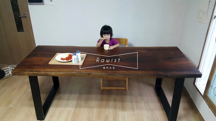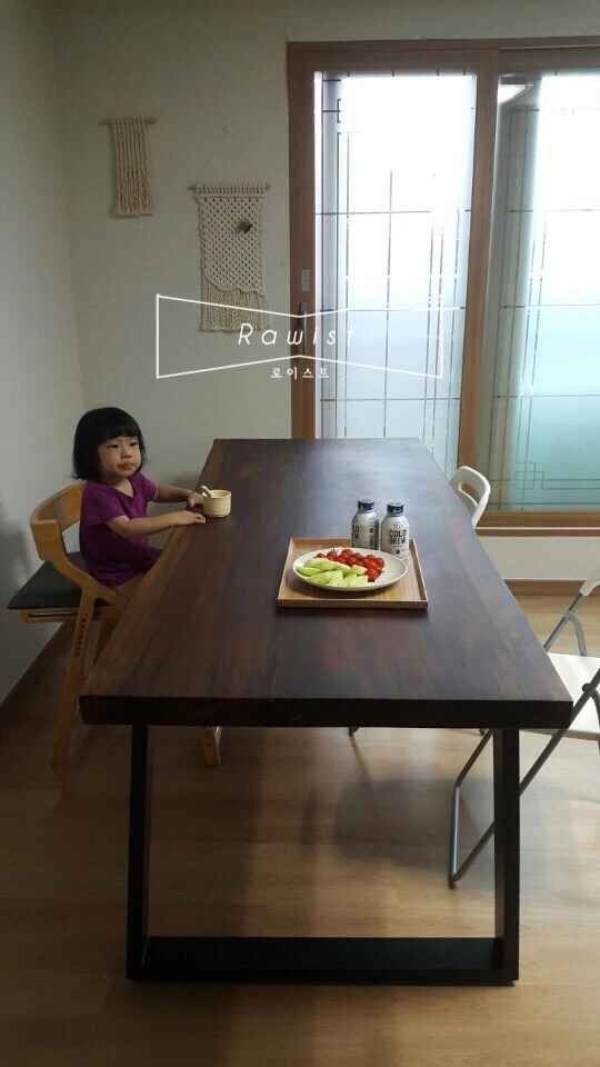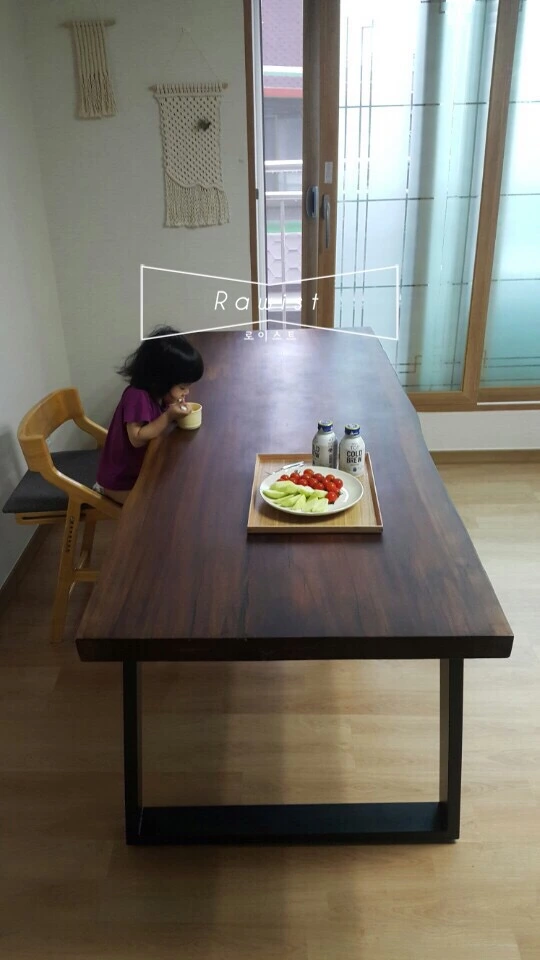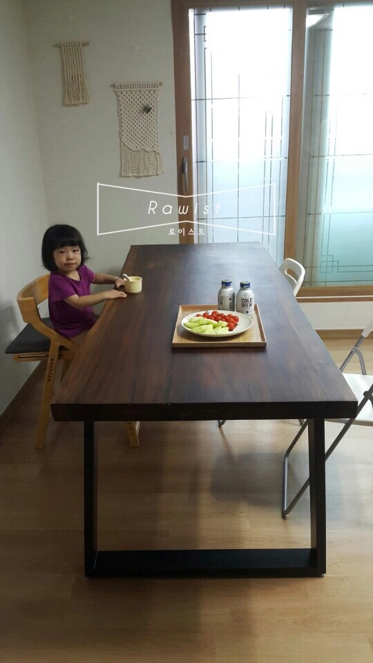 고객님은 6인용 식탁을 원하셨다. 큰 우드슬랩 위에 많은 사람들이 모여 함께 즐거운 공간을 즐기기 원하셨다. 고객님은 오랫동안 대화를 나누며 우드슬랩 색을 맞추고 함께 로이스트 우드슬랩을 제작하였다.