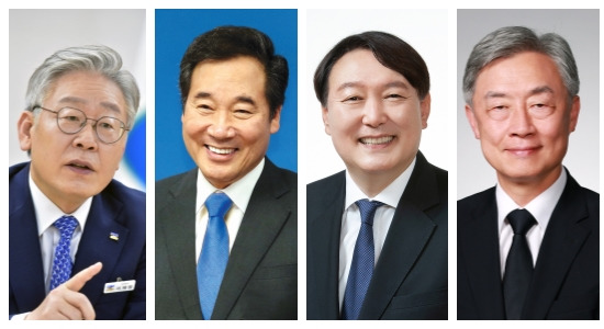 왼쪽부터 더불어민주당 이재명 경기지사와 이낙연 의원, 국민의힘 윤석열 전 검찰총장과 최재형 전 감사원장 ⓒ중앙선거관리위원회