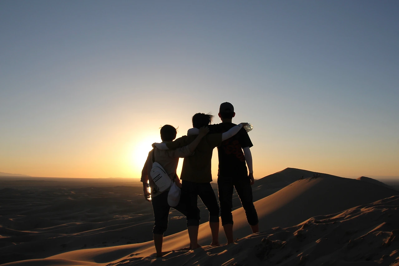 투어를 다니는 동안, 노을을 매일 마주할 수 있었던 것은 아니었다. 투어 첫날 이후로, 흐리거나 비가 온 날이 며칠 있었다. 그날은 별은 물론이고, 노을도 볼 수 없었다. 하지만 다행히도, 홍고린엘스 사막 위에 올랐던 날에는 하늘에 구름 한 점 없었다. 구름이 없어서 사막 위를 오르는 일이 더 고됐지만, 덕분에 평생 잊지 못할 장면을 마주할 수 있었다. 헐떡이던 숨조차 멎을 정도로 아름다운 장면이었다. 해가 완전히 넘어가는 동안 지긋이 바라보다가, 생각에 잠겼다가, 셔터를 눌러대기를 반복했다. 그 장면을 앞에 둔 채로, 함께 사진도 찍고, 서로의 감상을 한창 공유하기도 하다가, 모래 위에 털썩 앉고 나서 한참을 생각에 잠겼다. 저렇게 아름다운 장면이 지구 도처에 있을 텐데, 어떻게 저 너머로 지는 해처럼 사라지고 싶다는 어리석은 생각을 했던 것일까.