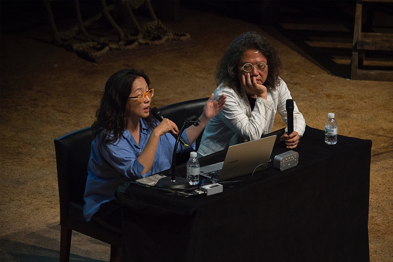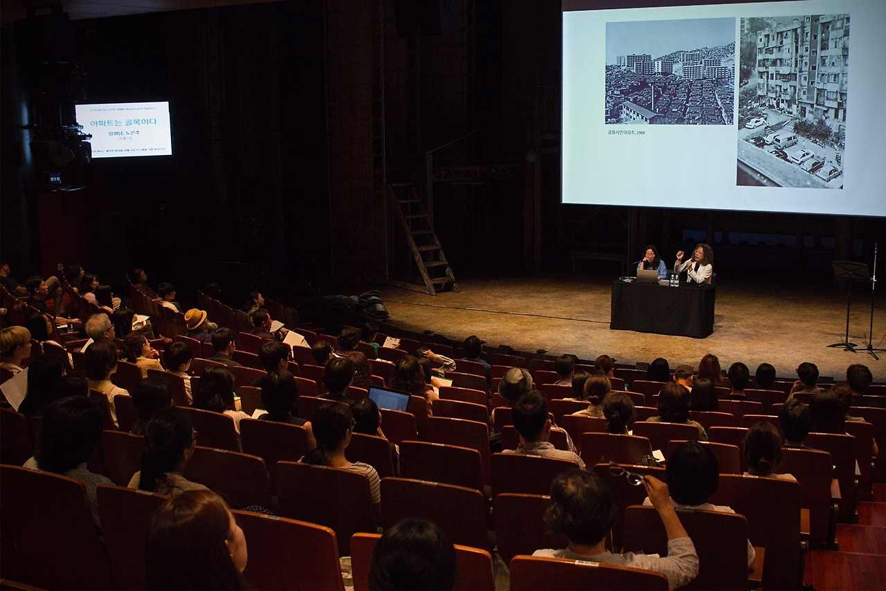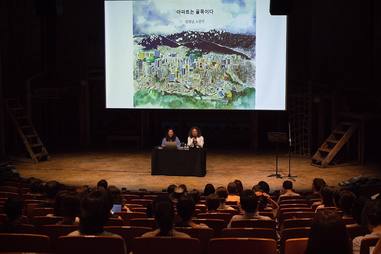 두산인문극장의 일곱 번째 강연은 노은주, 임형남 건축가의 ‘아파트는 골목이다’로 진행되었다. 1998년부터 가온건축을 운영하고 있는 이들은 루치아의 뜰, 금산주택 등을 설계했고, 공간디자인대상, 공간문화대상 등을 수상했다. <나무가 자라는 집>, <골목인문학> 등 십여 개의 저서를 발간했다. 서울의 ‘골목’에 대한 남다른 애정을 가진 이들 부부는 이번 강연에서 골목과 이질적 존재 혹은 연결선상에 놓인 존재로써의 아파트에 대해서 이야기했다.